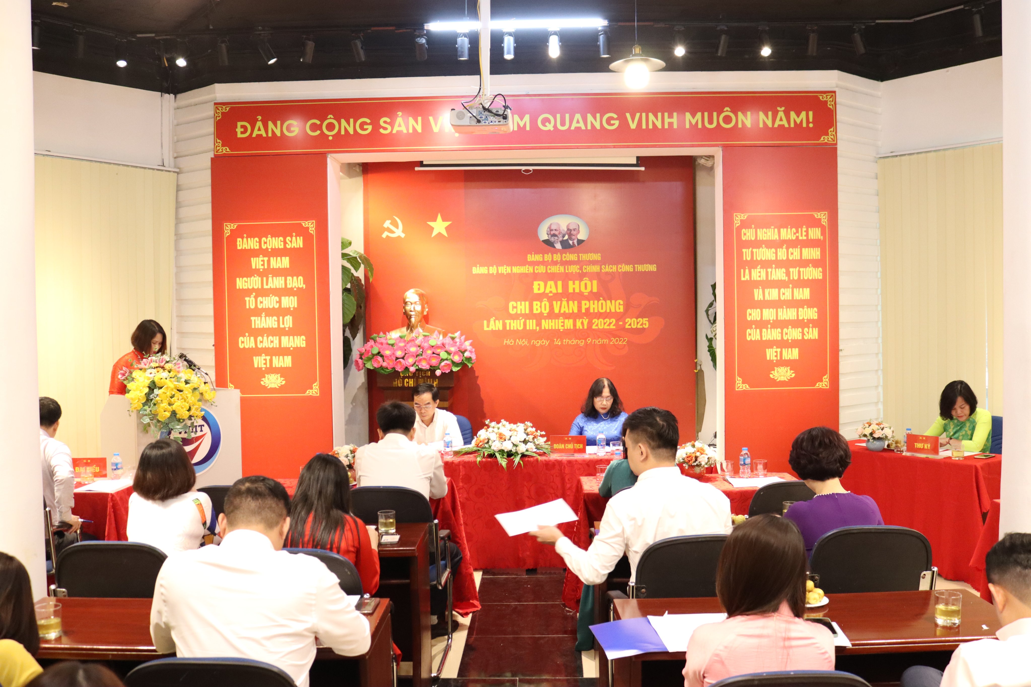 Chiều ngày 14/9/2022, tại trụ sở Viện Nghiên cứu Chiến lược, Chính sách Công Thương - số 17 Yết Kiêu, Nguyễn Du, Hà Nội đã diễn ra Đại hội Chi bộ Văn phòng lần thứ III - nhiệm kỳ 2022-2025.