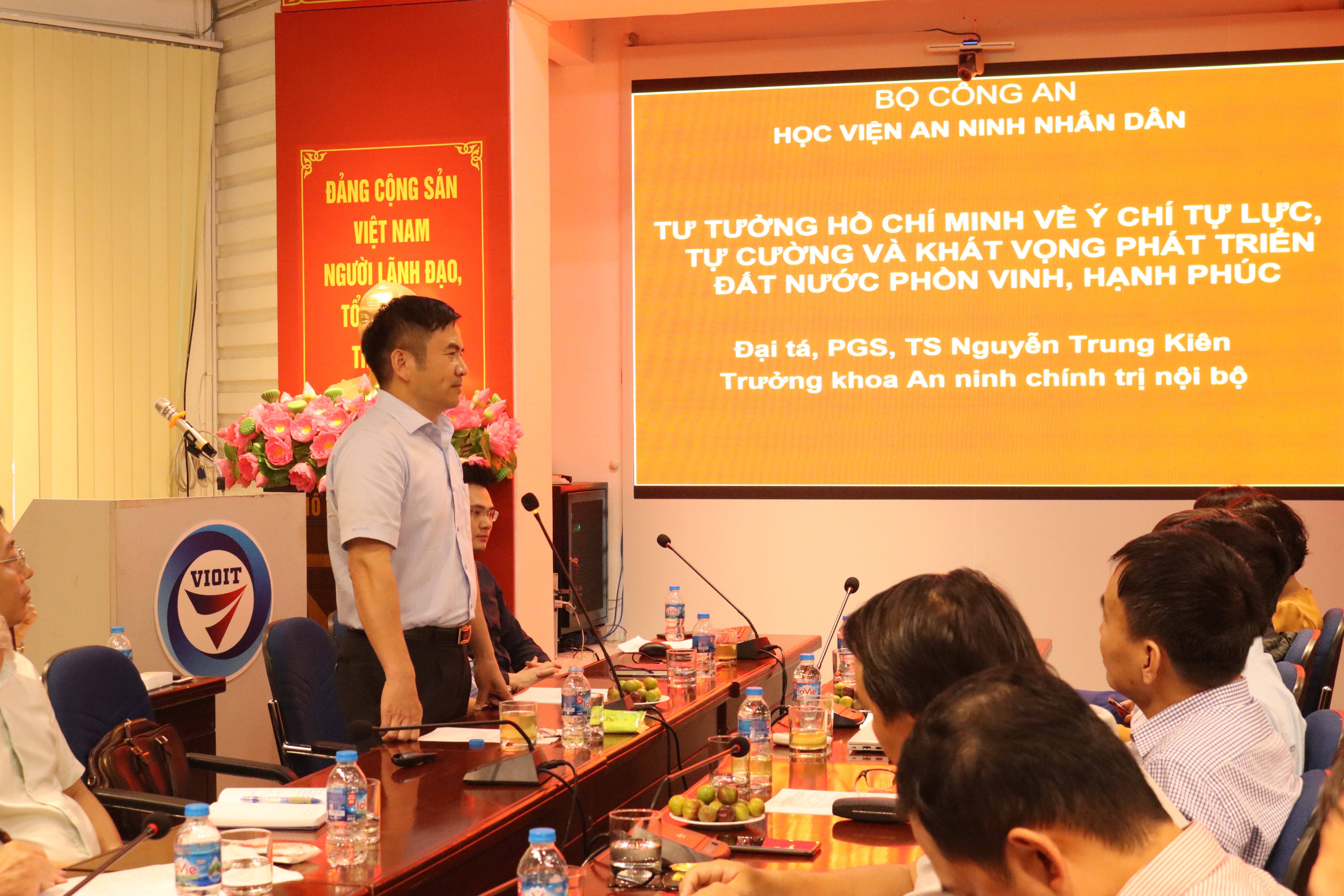 Tại buổi tọa đàm, các đồng chí đảng viên đã được nghe phần trình bày của Đại tá, PGS.TS Nguyễn Trung Kiên - Trưởng khoa An ninh chính trị nội bộ - Học viện An ninh Nhân dân về “Học tập và làm theo tư tưởng, đạo đức, phong cách Hồ Chí Minh về ý chí tự lực, tự cường và khát vọng phát triển đất nước phồn vinh, hạnh phúc”.