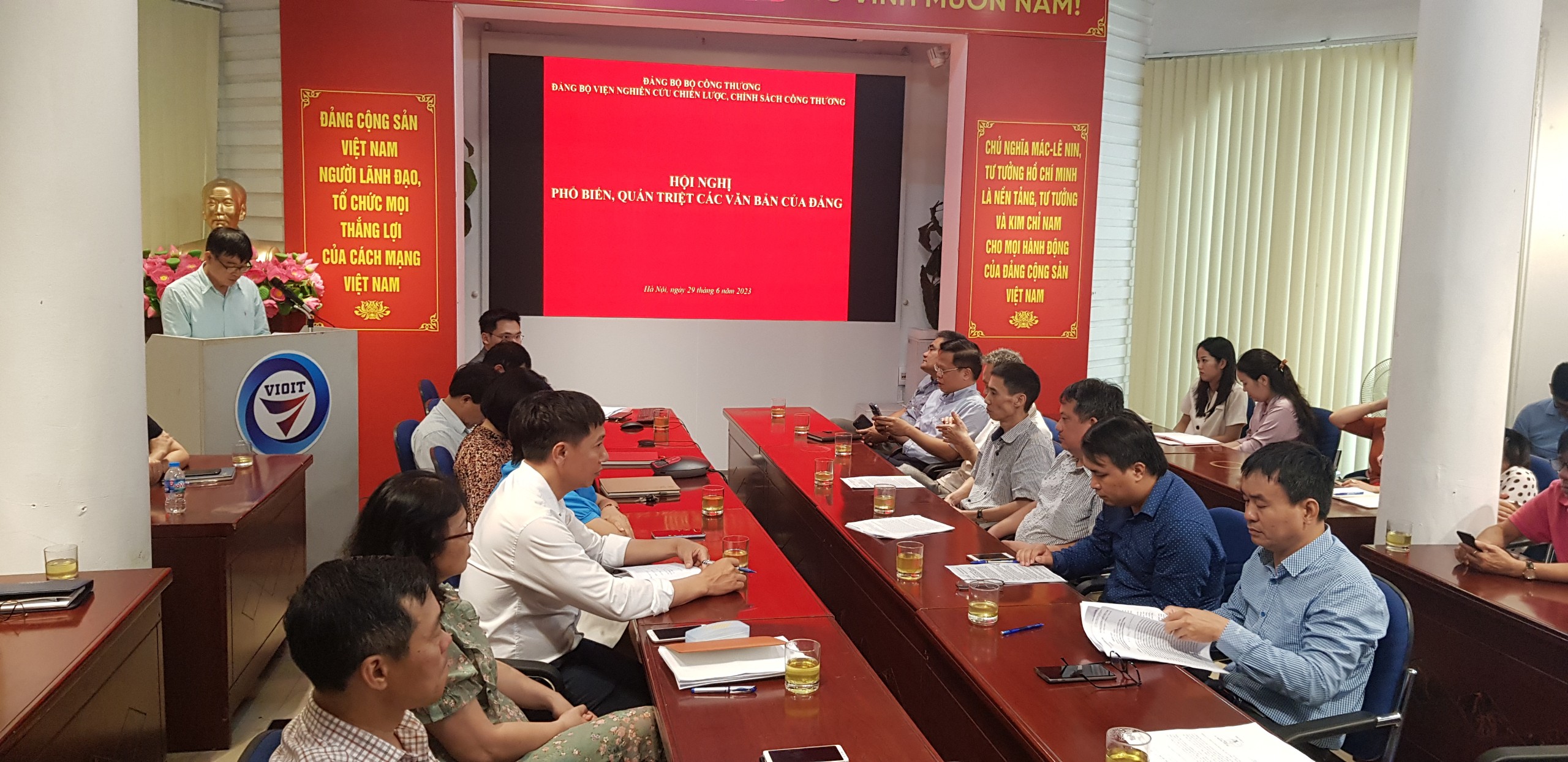 Sáng ngày 29 tháng 6 năm 2023, tại trụ sở Viện Nghiên cứu Chiến lược, Chính sách Công Thương, Đảng bộ Viện Nghiên cứu Chiến lược, Chính sách Công Thương đã tổ chức Hội nghị quán triệt và phổ biến các văn bản của Đảng cho toàn thể Đảng viên thuộc Đảng bộ Viện Nghiên cứu Chiến lược, Chính sách Công Thương.