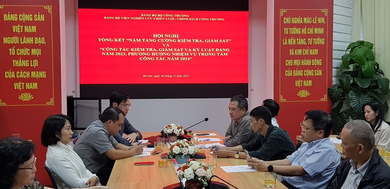 Thực hiện chỉ đạo Đảng ủy Bộ Công Thương, chiều ngày 30 tháng 11 năm 2023, tại trụ sở Viện Nghiên cứu chiến lược, chính sách Công Thương - 17 Yết Kiêu, Hai Bà Trưng, Hà Nội, Đảng ủy Viện Nghiên cứu chiến lược, chính sách Công Thương đã tổ chức Hội nghị phổ biến và quán triệt các văn bản của Đảng; tổng kết “Năm tăng cường kiểm tra, giám sát” và “Công tác kiểm tra, giám sát và kỷ luật Đảng năm 2023, phương hướng nhiệm vụ trọng tâm công tác năm 2024” cho toàn thể Đảng viên thuộc Đảng ủy Viện Nghiên cứu chiến lược, chính sách Công Thương.