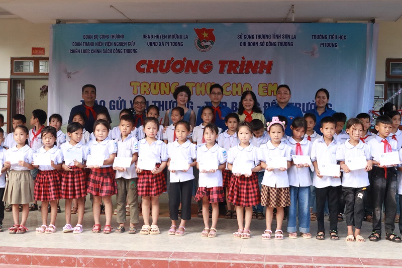 Được sự nhất trí của Đảng ủy, Lãnh đạo Viện Nghiên cứu chiến lược, chính sách Công Thương, từ ngày 22/9-24/9/2023 tại tỉnh Sơn La, Đoàn Thanh niên Viện chủ trì, phối hợp cùng với BCH Công đoàn Viện, Chi đoàn Sở Công Thương tỉnh Sơn La tổ chức Chương trình công tác xã hội thiện nguyện với chủ đề “Trung thu cho em, Trao gửi yêu thương - Tiếp bước đến trường” năm 2023 với mục đích phát huy truyền thống văn hóa tốt đẹp và tinh thần “Tương thân tương ái” của dân tộc Việt Nam. Chương trình thiện nguyện nhằm mục đích trao tặng những món quà ý nghĩa, thiết thực đến học sinh có hoàn cảnh khó khăn, con em gia đình dân tộc thiểu số là hộ nghèo trên địa bàn xã Pi Toong, đồng thời cũng tổ chức Chương trình trung thu cho toàn thể các em học sinh trong trường nhân dịp đầu năm học mới 2023-2024 và không khí Trung thu đang sắp đến. Toàn bộ kinh phí quà tặng và tổ chức Chương trình từ nguồn ủng hộ, hỗ trợ của các đơn vị, cán bộ, công chức, viên chức, người lao động trong Viện và ngoài Viện do Đoàn thanh niên Viện phát động.