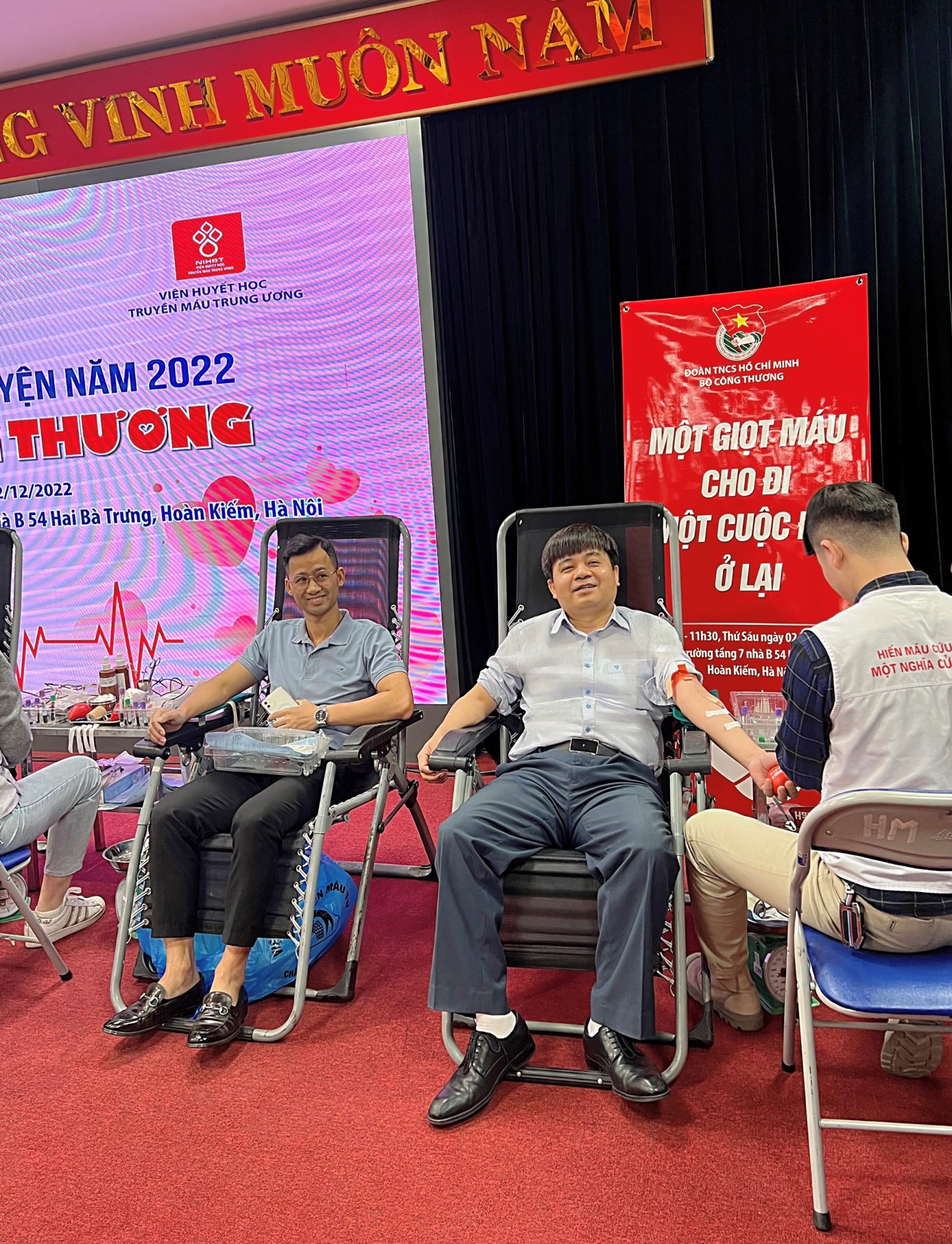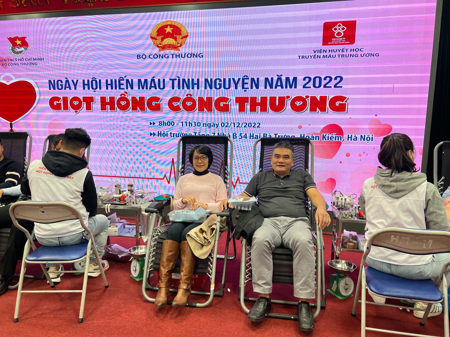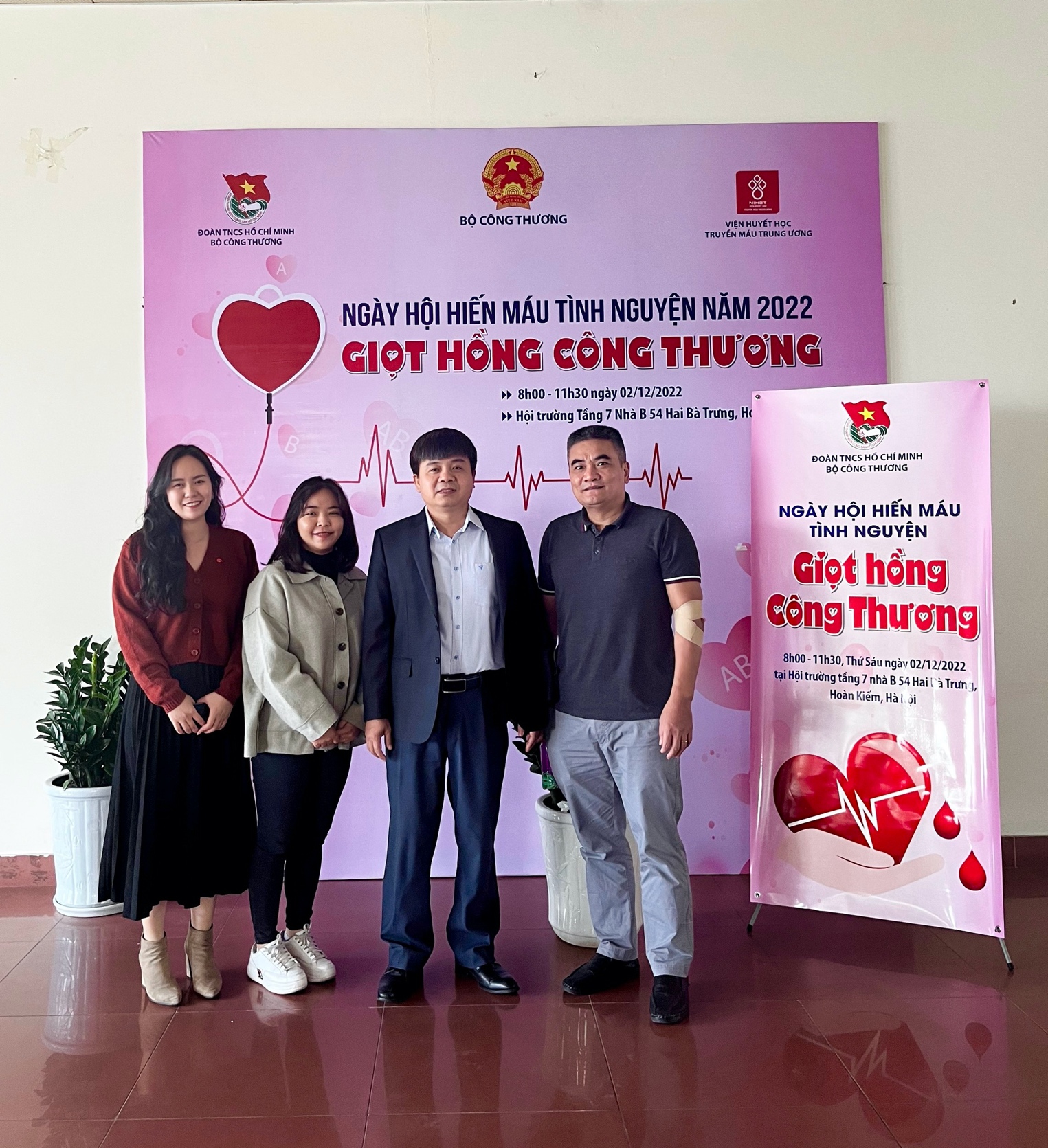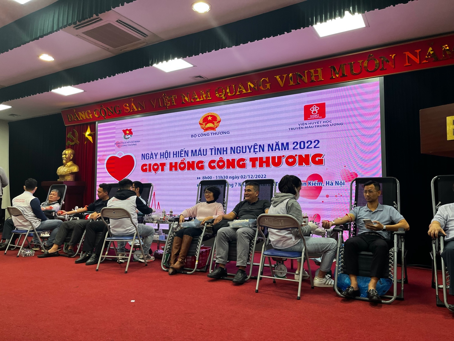 Ngày 02/12/2022, tại Trụ sở Bộ Công Thương, số 54 Hai Bà Trưng, Hoàn Kiếm, Hà Nội; được sự đồng ý của Lãnh đạo Bộ Công Thương, Ban Chấp hành Đoàn Thanh niên Bộ Công Thương đã chủ trì, phối hợp với Viện Huyết học - Truyền máu Trung ương tổ chức Ngày hội hiến máu tình nguyện Giọt hồng Công Thương năm 2022.