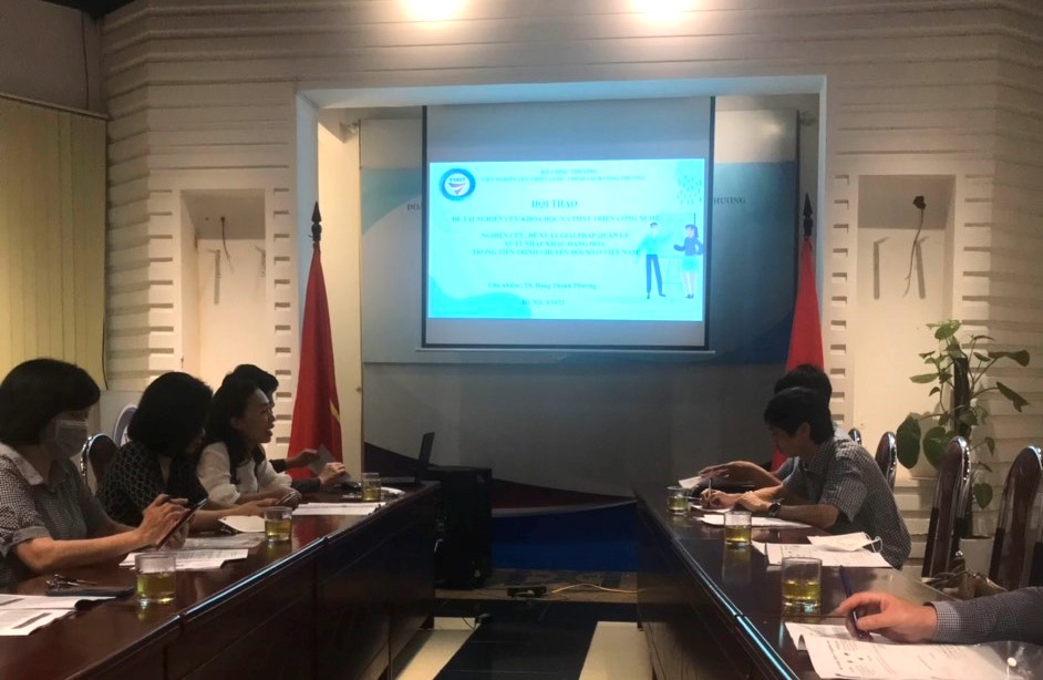 Ngày 13/5/2022, tại trụ sở 17 Yết Kiêu, Viện Nghiên cứu Chiến lược Chính sách Công Thương tổ chức Hội thảo góp ý báo cáo đề tài nghiên cứu khoa học công nghệ cấp Bộ: Nghiên cứu, đề xuất giải pháp quản lý xuất nhập khẩu hàng hóa trong tiến trình chuyển đổi số ở Việt Nam. Đề tài do TS. Đặng Thanh Phương, Trưởng phòng Nghiên cứu phát triển Thương mại làm Chủ nhiệm. Chủ trì Hội thảo là TS. Lê Huy Khôi, Trưởng phòng Quản lý Khoa học và Đào tạo sau đại học.
