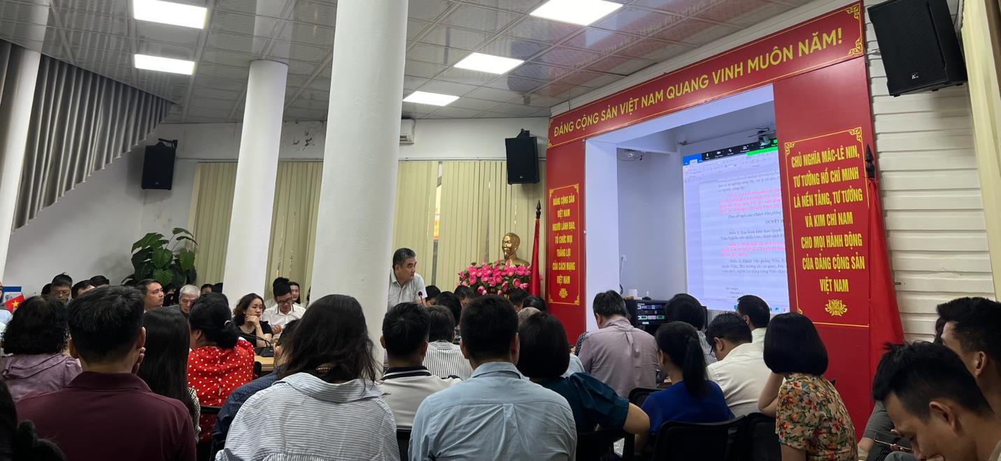 Cuộc họp diễn ra dưới hai hình thức trực tiếp tại tầng 1 của Viện và tầng 2 qua ứng dụng Zoom online. Cuộc họp với sự tham gia của toàn thể cán bộ công chức, viên chức và người lao động Viện Nghiên cứu chiến lược, chính sách Công Thương .