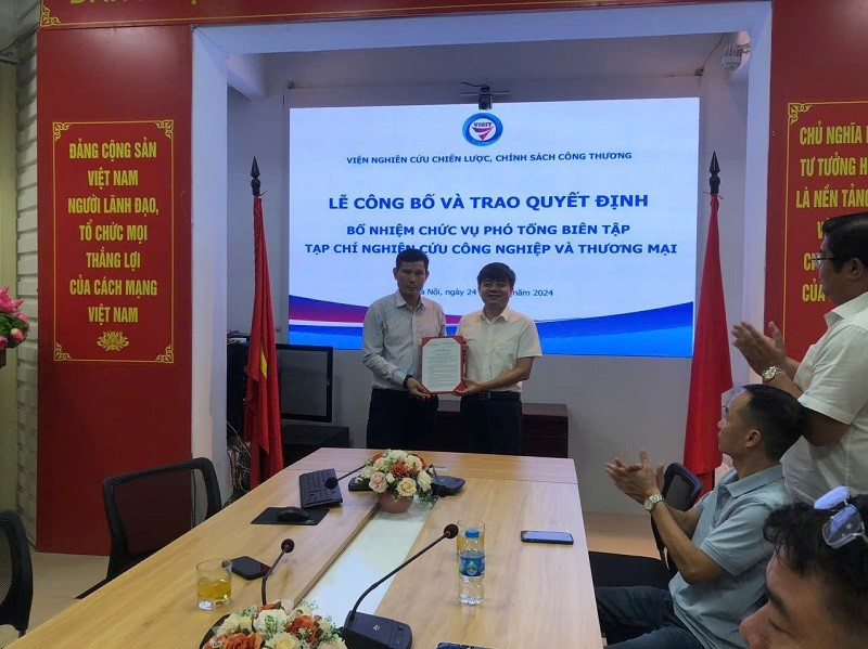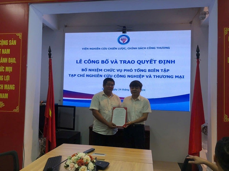 Thay mặt Đảng ủy và Lãnh đạo Viện, Viện trưởng Nguyễn Văn Hội đã trao Quyết định và chúc mừng các nhân sự được bổ nhiệm, khẳng định và ghi nhận sự nỗ lực, phấn đấu của hai đồng chí, đồng thời nhấn mạnh, việc kiện toàn bộ máy lãnh đạo của Tạp chí Nghiên cứu Công nghiệp và Thương mại sẽ giúp Tạp chí hoạt động tốt hơn, ổn định, nâng cao chất lượng trong thời gian tới. Viện trưởng mong muốn tập thể cán bộ, phóng viên, biên tập viên của Tạp chí đoàn kết, nỗ lực, không ngừng đổi mới, nâng cao chất lượng trong mọi mặt hoạt động, thực hiện đúng mục đích, tôn chỉ của kênh thông tin, truyền thông quan trọng của Viện, của ngành Công Thương.