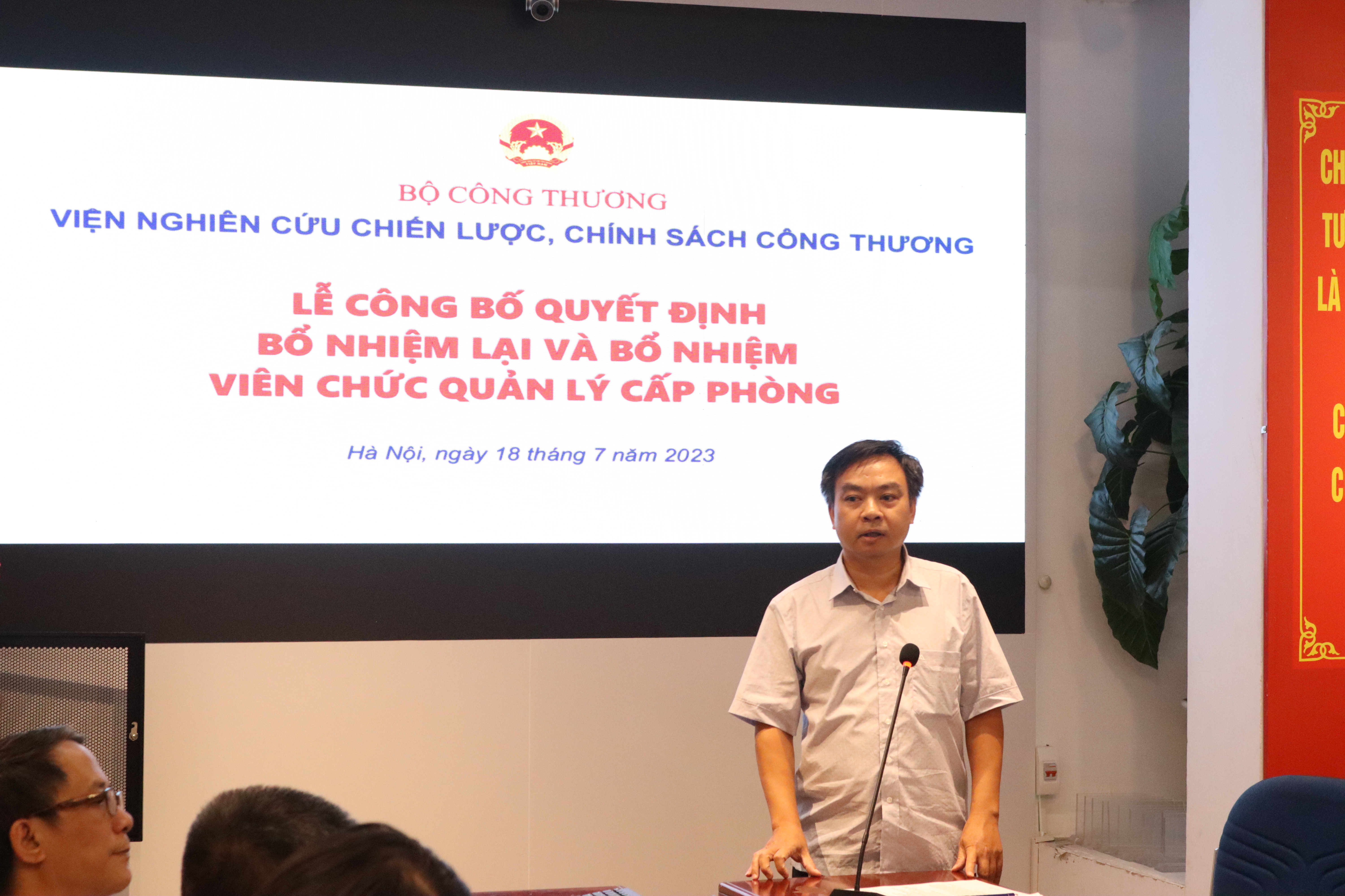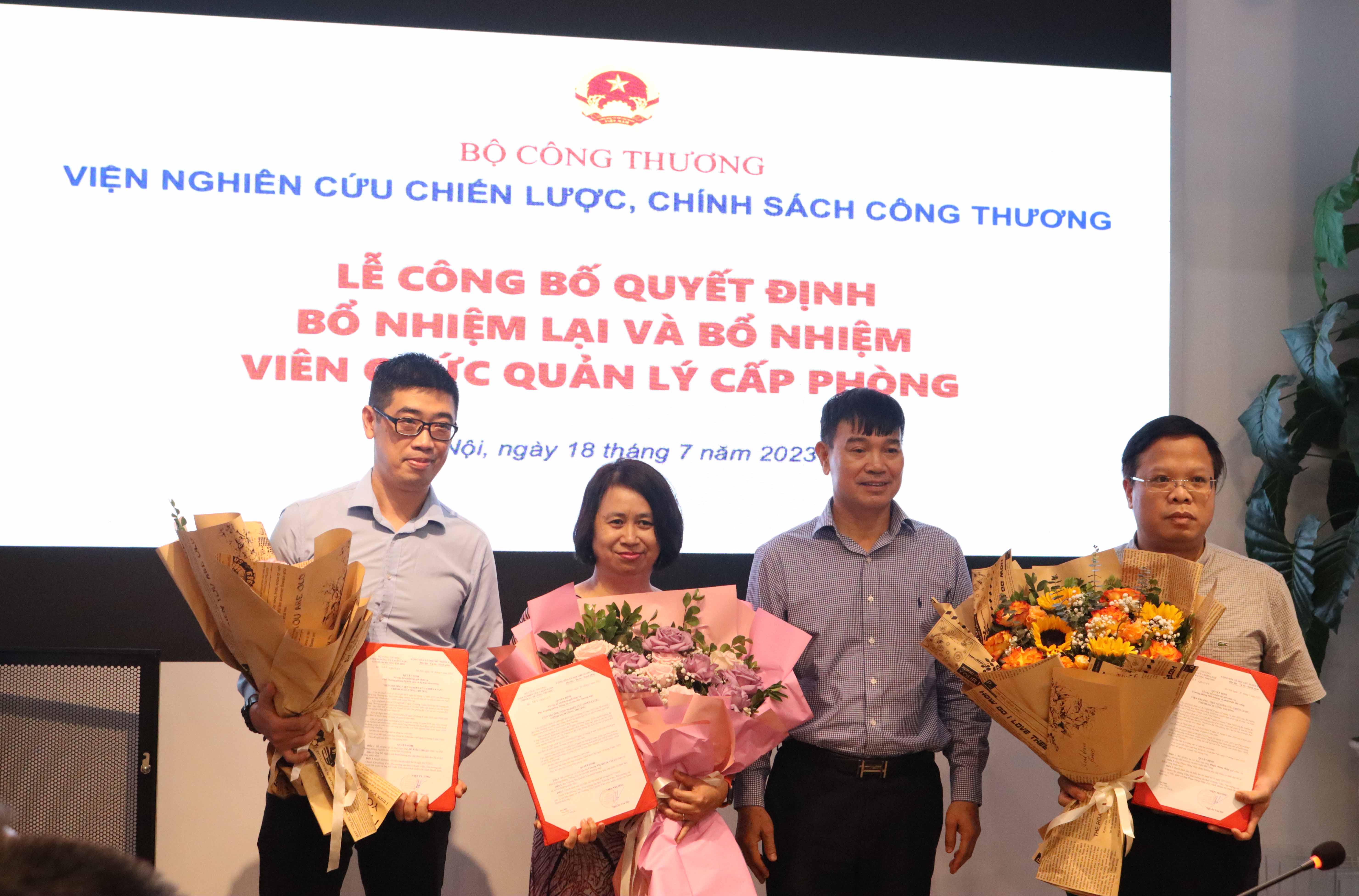 Sáng ngày 18/7/2023, tại trụ sở số 17 Yết Kiêu, Hai Bà Trưng, Hà Nội, Viện Nghiên cứu Chiến lược, Chính sách Công Thương đã tổ chức Lễ công bố quyết định bổ nhiệm lại và bổ nhiệm viên chức quản lý cấp phòng.