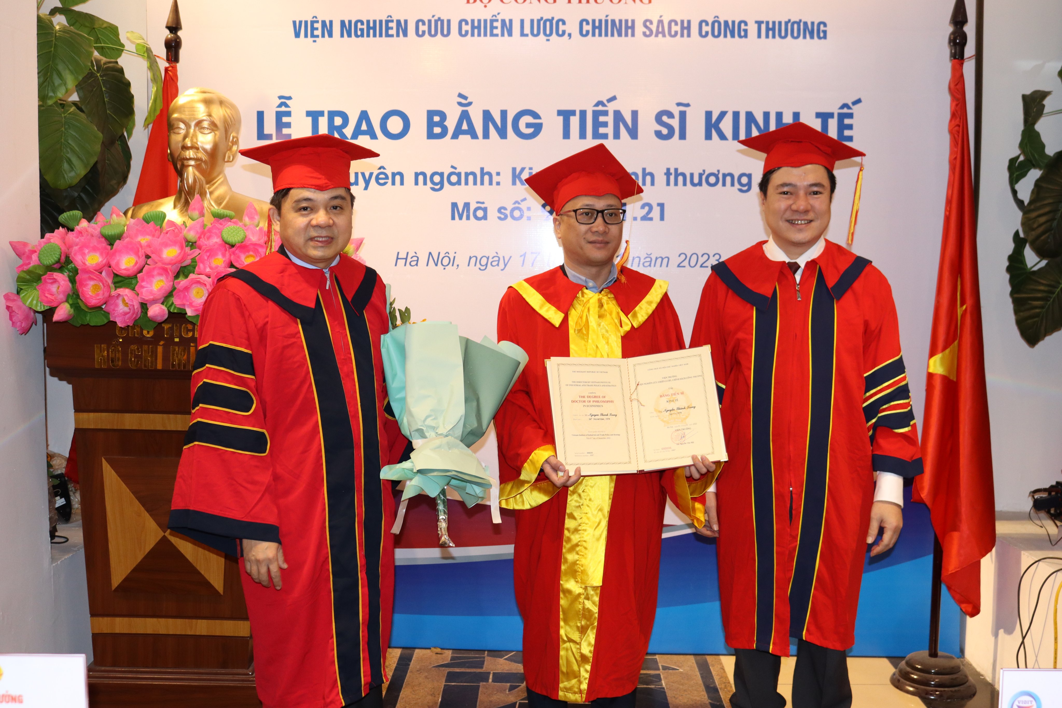 Đến dự buổi lễ trao bằng, có sự hiện diện của TS. Nguyễn Sinh Nhật Tân - Thứ trưởng Bộ Công Thương; TS. Nguyễn Văn Hội - Viện trưởng Viện Nghiên cứu Chiến lược, Chính sách Công Thương; Các thầy cô giáo, thầy cô hướng dẫn của các nghiên cứu sinh; lãnh đạo của các đơn vị phòng ban trong Viện; Các nhà khoa học của Viện; Các nghiên cứu sinh đang học tập và nghiên cứu tại viện; bạn bè và người thân của các tân Tiến sĩ.