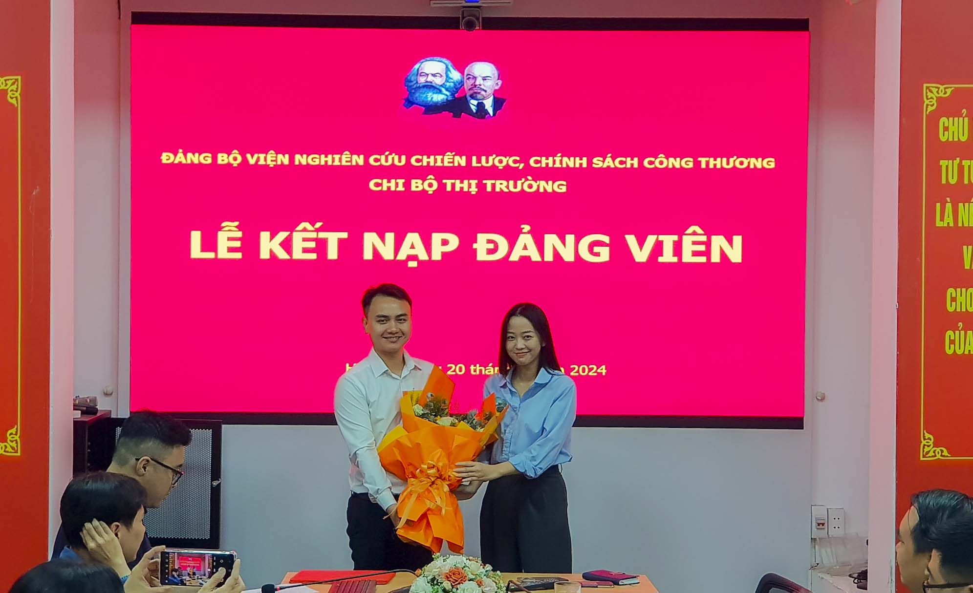 Lễ kết nạp đảng viên được diễn ra trong không khí trang nghiêm, đúng trình tự theo quy định của Điều lệ Đảng. Sau phần nghi thức, quần chúng ưu tú Phạm Ngọc Dũng đã đọc đơn xin vào Đảng trước toàn thể hội nghị. Sau đó, đồng chí Hoàng Thị Hương Lan - Chi ủy viên Chi bộ Thị trường được phân công giúp đỡ quần chúng Phạm Ngọc Dũng đọc bản giới thiệu người vào Đảng; Đồng chí Trần Thị Ngọc Ánh - Bí thư Đoàn Thanh niên Viện, đại diện BCH Đoàn Thanh niên Viện đọc bản giới thiệu đoàn viên ưu tú vào Đảng.