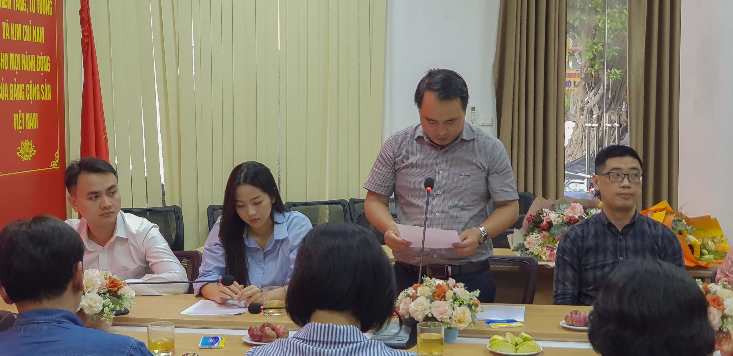 Tiếp theo chương trình, đồng chí Vương Quang Lượng - Bí thư chi bộ Thị trường lên đọc và trao Quyết định kết nạp cho đảng viên mới Phạm Ngọc Dũng và phổ biến nhiệm vụ, quyền hạn của người Đảng viên mới.