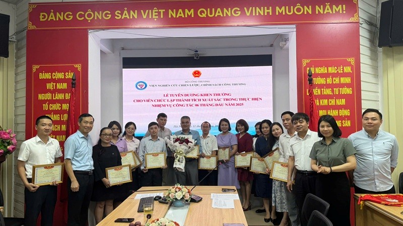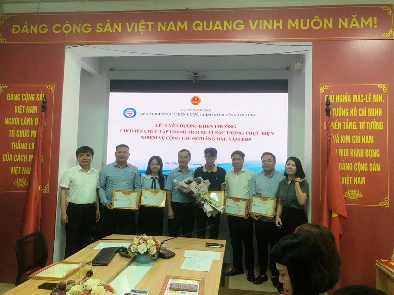 Cũng trong khuôn khổ buổi Lễ, Viện Nghiên cứu Chiến lược, Chính sách Công Thương đã tuyên dương và khen thưởng 05 đồng chí có thành tích xuất sắc trong việc tổ chức thành công Đại hội Đảng bộ Viện nhiệm kỳ 2025 - 2030; 03 đồng chí đã có thành tích xuất sắc trong việc tổ chức thành công Hội thảo “Tiếp cận thị trường Halal toàn cầu - Cơ hội cho doanh nghiệp Việt Nam”. Đây là những cá nhân tiêu biểu, luôn tiên phong, nỗ lực vượt khó, sáng tạo trong công tác, thực hiện hiệu quả các nhiệm vụ khó, cấp bách, phát sinh đột xuất ngoài kế hoạch được giao, góp phần quan trọng trong thực hiện nhiệm vụ công tác 6 tháng đầu năm 2025 của Viện.