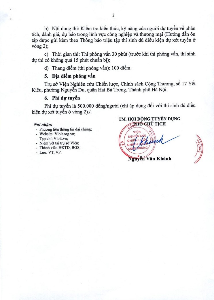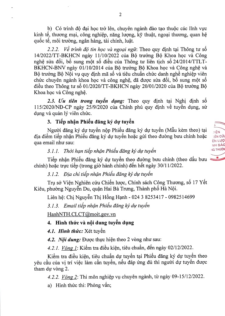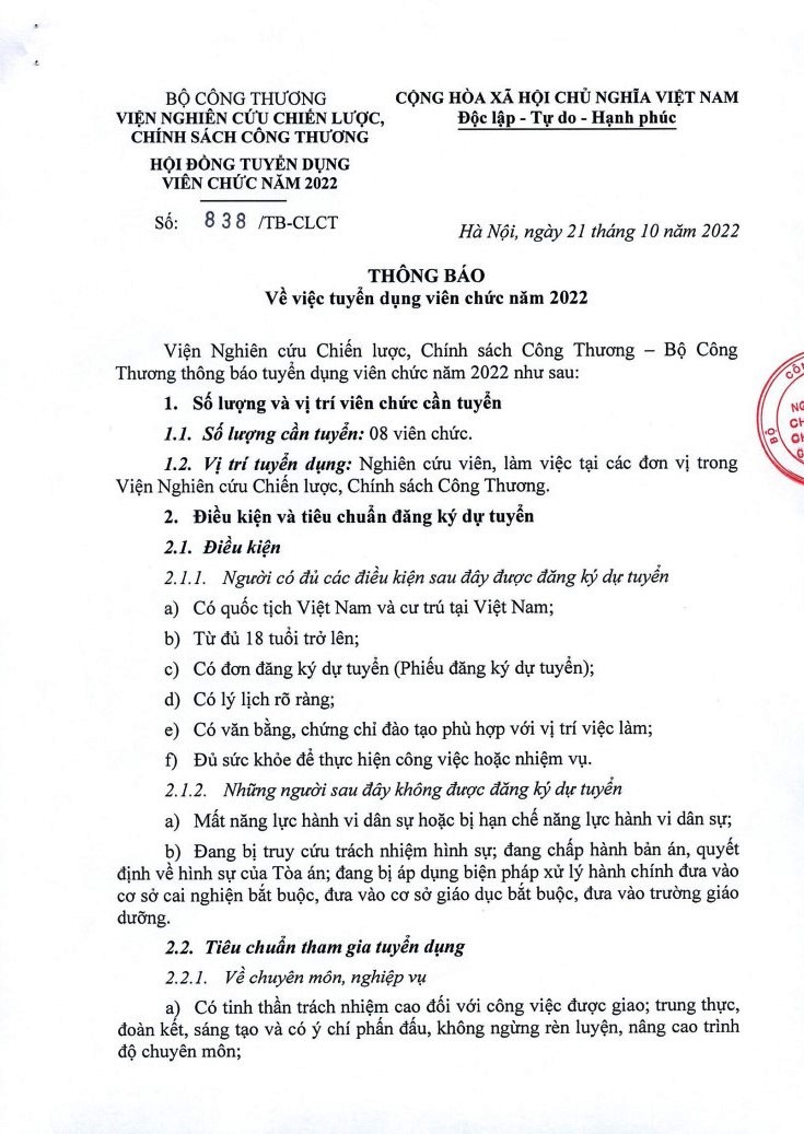 Thông báo tuyển dụng viên chức năm 2022 - Viện Nghiên cứu Chiến lược, Chính sách Công Thương