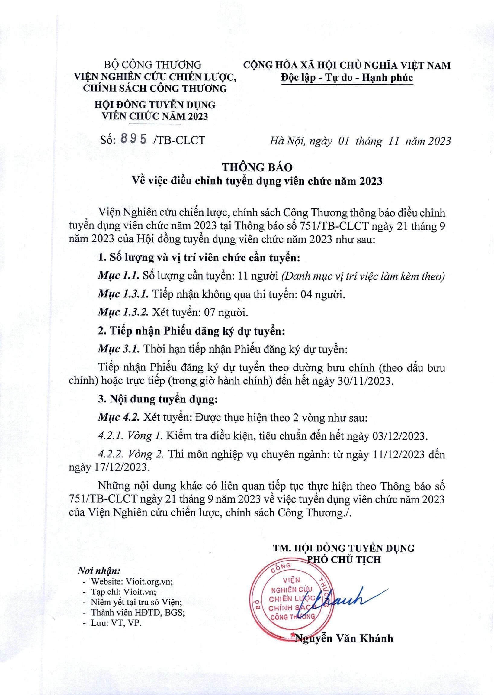 Thông báo về việc điều chỉnh tuyển dụng viên chức 2023
