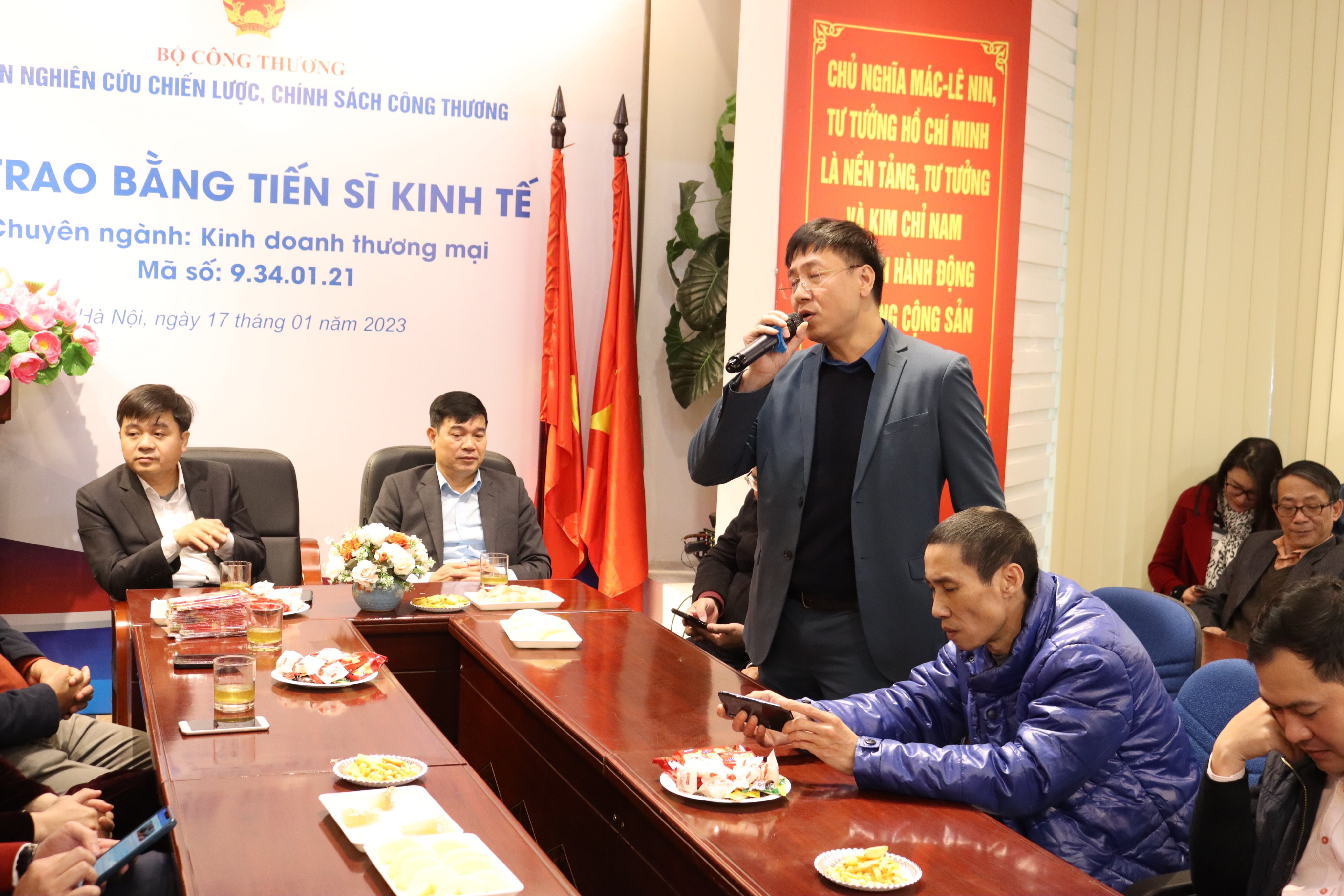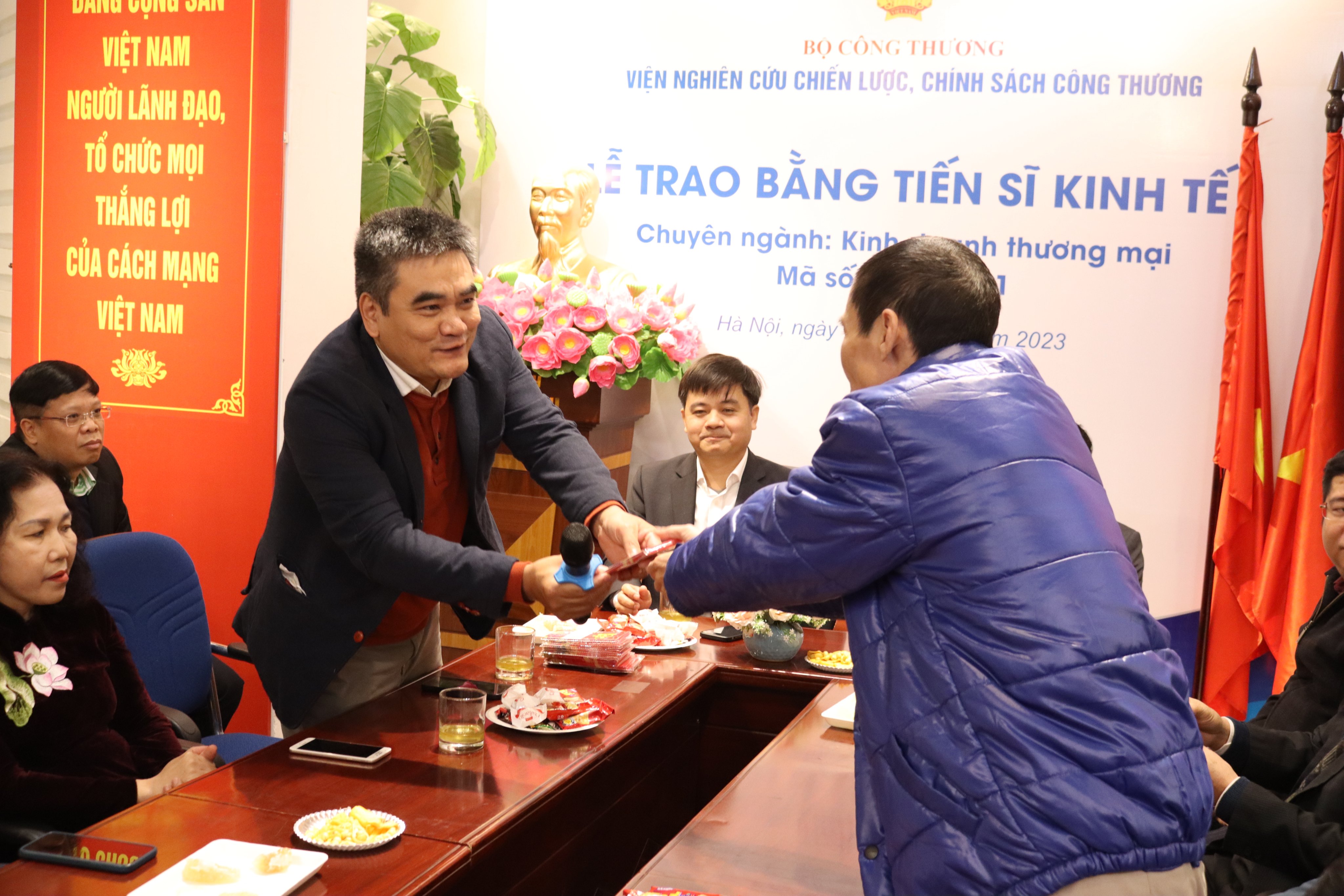 Trong không khí tưng bừng, phấn khởi mừng Đảng, mừng Xuân mới, sáng ngày 27/01/2023 (tức mùng 6 Tết), Viện Nghiên cứu Chiến lược, Chính sách Công Thương đã tổ chức buổi gặp mặt đầu xuân Quý Mão 2023. Tham dự buổi gặp mặt có TS. Nguyễn Văn Hội - Bí thư Đảng ủy, Viện Trưởng; TS. Vũ Quang Hùng - Phó Viện trưởng; Lãnh đạo các phòng ban và toàn thể viên chức, người lao động trong Viện.