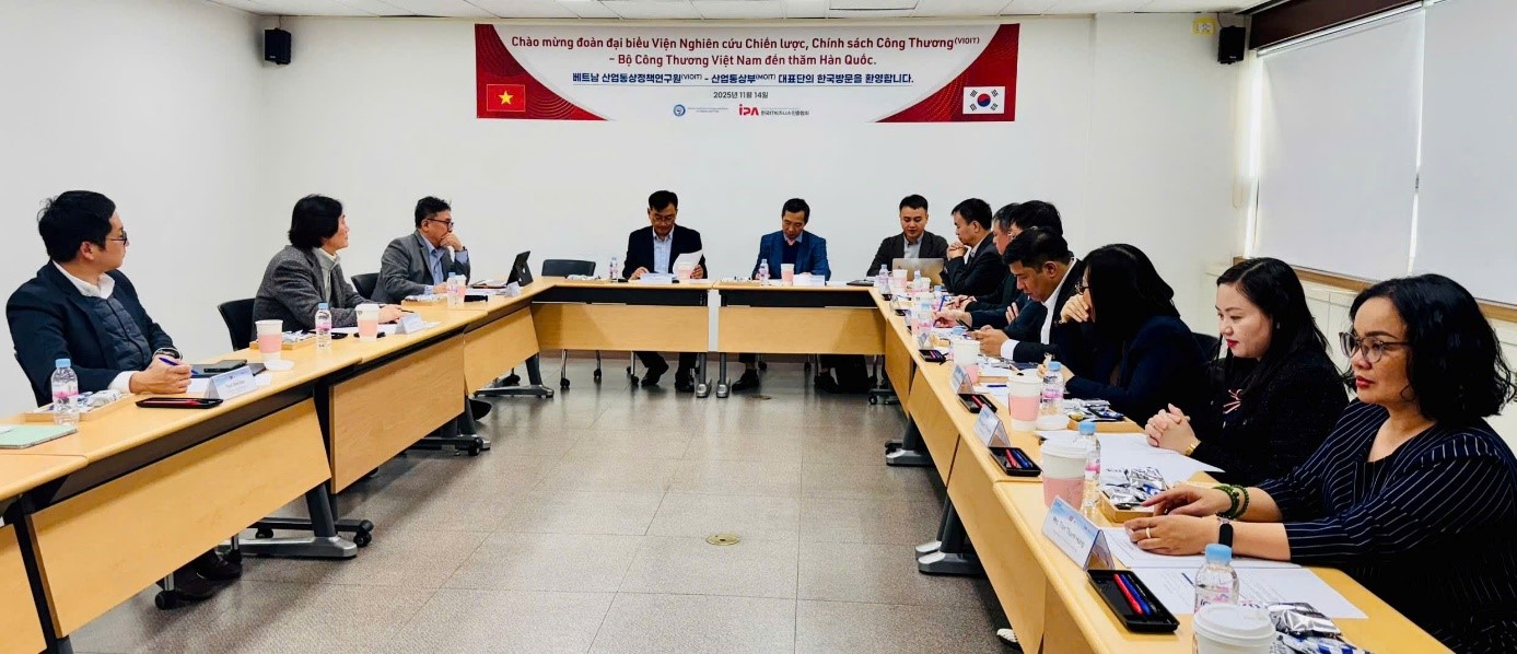 Trong khuôn khổ chuyến công tác tại Hàn Quốc từ ngày 14 đến 18/11/2025, Đoàn công tác của Viện Nghiên cứu Chiến lược, Chính sách Công Thương (VIOIT) do Phó Viện trưởng Nguyễn Khắc Quyền dẫn đầu đã làm việc với nhiều cơ quan, tổ chức và hiệp hội của Hàn Quốc.