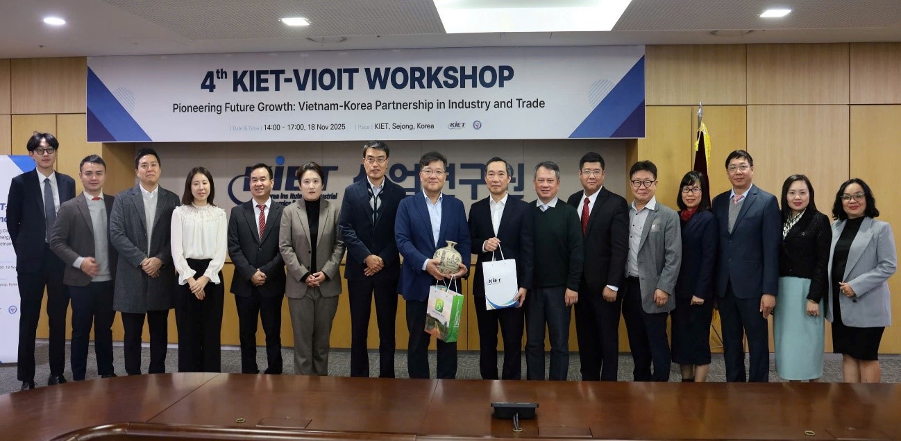 Ngày 18/11, Đoàn công tác của Viện Nghiên cứu Chiến lược, Chính sách Công Thương (VIOIT) đã có buổi làm việc với Viện Kinh tế Công nghiệp – Thương mại Hàn Quốc (KIET) tại thành phố Sejong – trung tâm hành chính và chính trị chiến lược của Hàn Quốc. Đây là Hội thảo chung lần thứ tư giữa hai bên, tiếp nối chuỗi hợp tác nghiên cứu được duy trì trong những năm gần đây.
