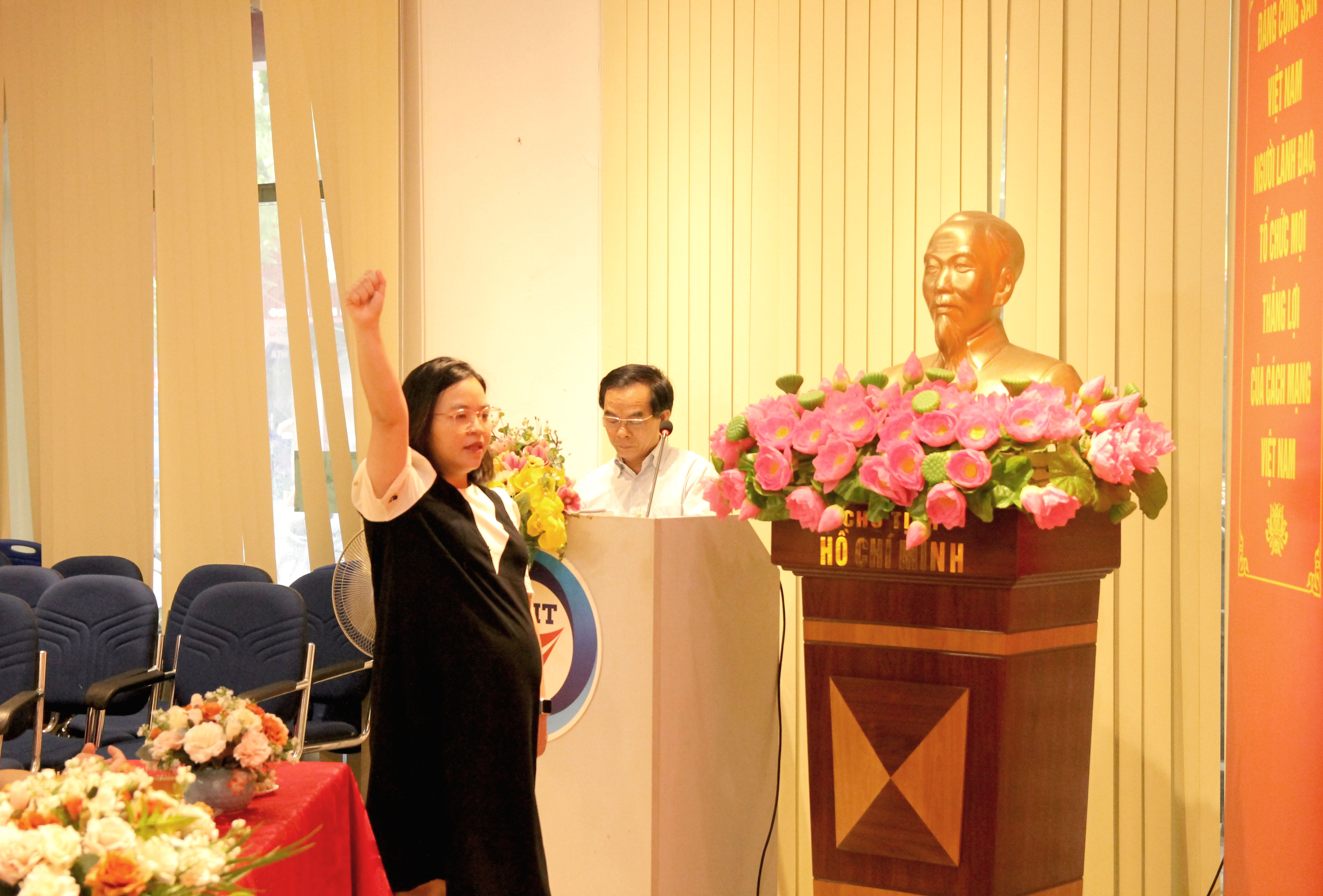 Sau khi nhận quyết định kết nạp Đảng viên từ Bí thư Chi bộ Văn phòng, dưới cờ Tổ quốc, cờ Đảng và chân dung Chủ tịch Hồ Chí Minh, cùng sự chứng kiến của Chi bộ, các đảng viên và các đại biểu, đảng viên mới Hoàng Hồng Anh đã đọc lời tuyên thệ của đảng viên Đảng Cộng sản Việt Nam, nguyện quyết tâm phấn đấu để luôn xứng đáng là người đảng viên gương mẫu, đóng góp sức mình thực hiện thành công nhiệm vụ chính trị của Chi bộ, góp phần xây dựng Chi bộ ngày càng vững mạnh.