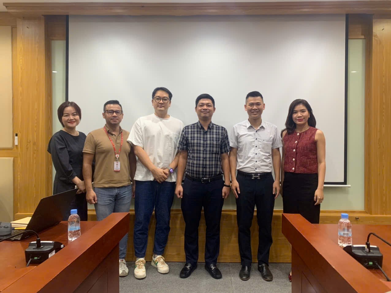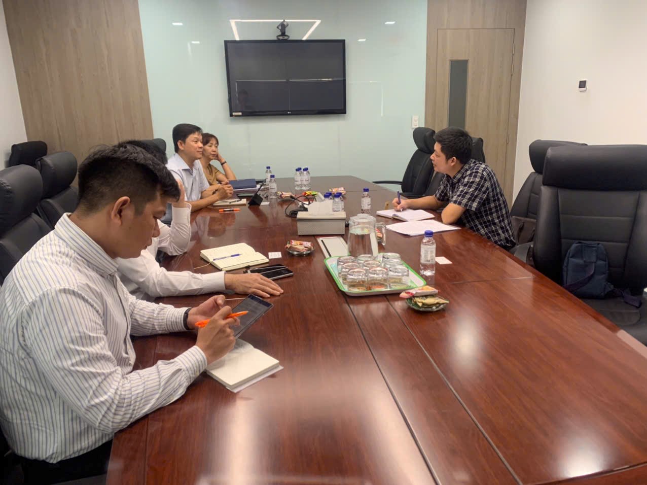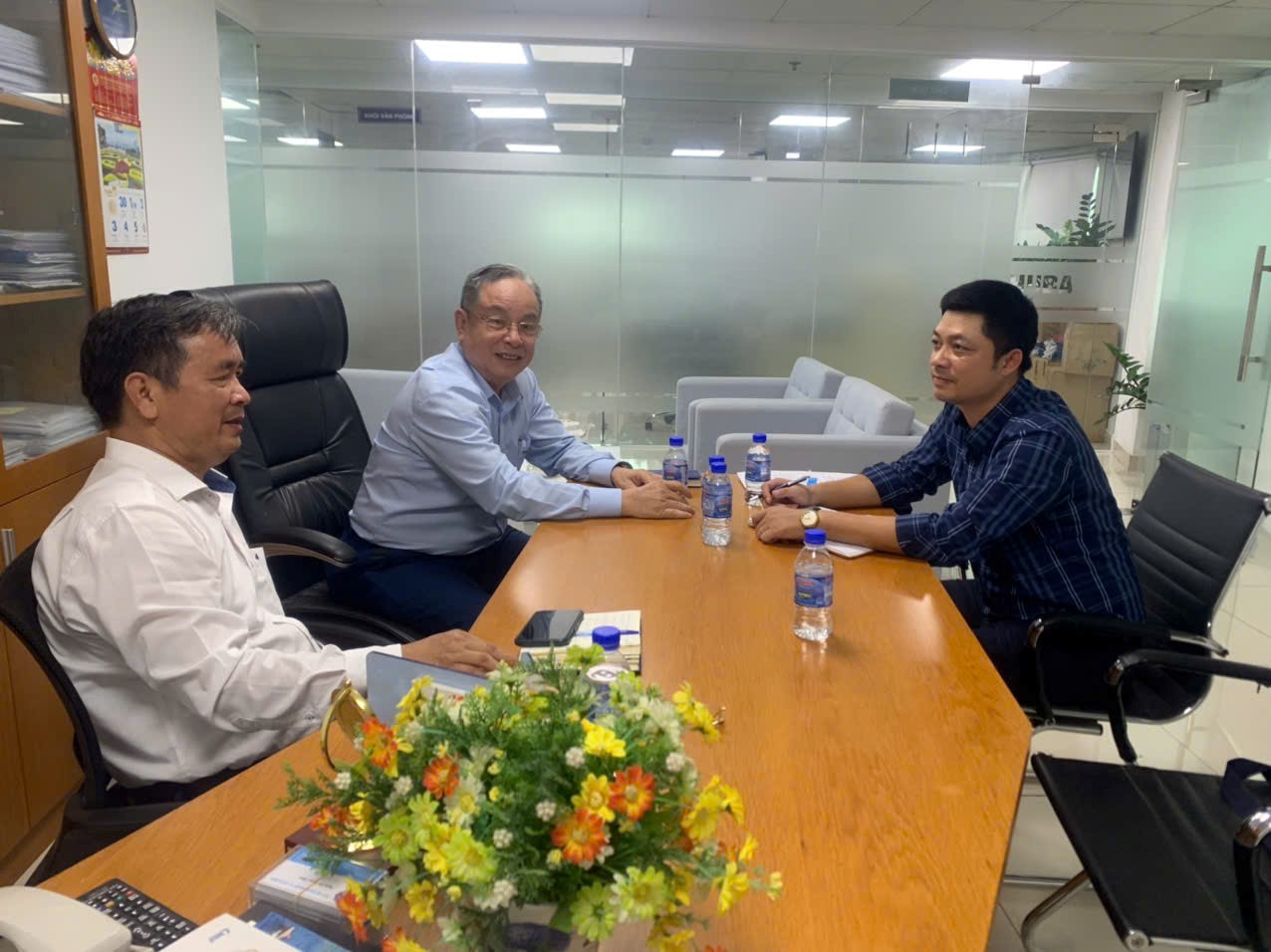 Đại diện Đoàn công tác trao đổi và làm việc với ông Nguyễn Đình Tuệ - Giám đốc và ông Nguyễn Đức Nghĩa - Phó Giám đốc Trung tâm DC Hỗ trợ (HUBA)