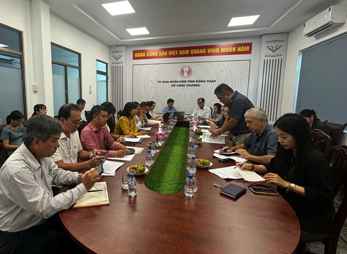 Buổi chiều ngày 13 tháng 11 năm 2024, đoàn công tác đã có buổi làm việc với Sở Công Thương tỉnh Đồng Tháp và đại diện các Sở, Ban, ngành khác trên địa bàn tỉnh về các vấn đề tình hình thương mại biên giới và kết quả hoạt động xuất nhập khẩu qua biên giới các cửa khẩu của tỉnh; thực trạng hệ thống cửa khẩu trên địa bàn tỉnh; công tác đầu tư, quản lý hạ tầng, dịch vụ trong khu vực cửa khẩu; công tác phối hợp, quản lý, điều hành các hoạt động trong khu vực cửa khẩu; rà soát, cập nhật thông tin về các dự án nguồn năng lượng đang hoạt động và dự án có tiềm năng phát triển trên địa bàn tỉnh Đồng Tháp.