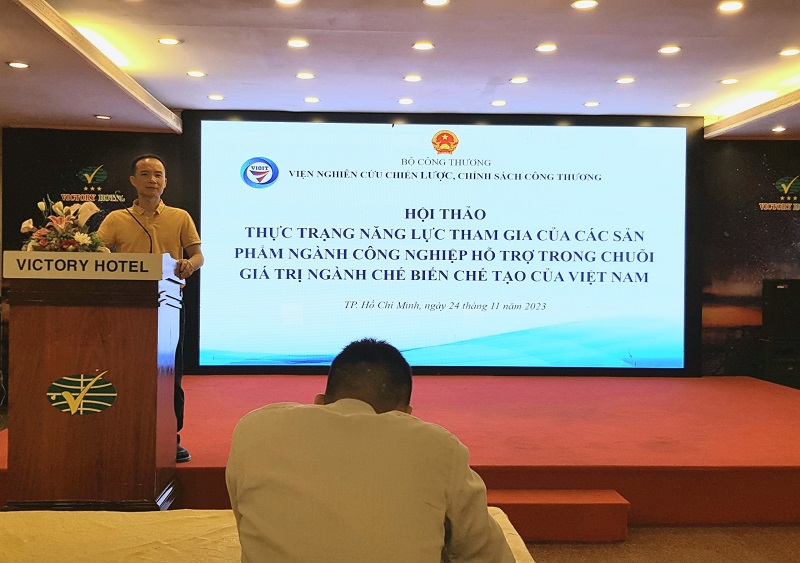 Đoàn cũng đã tổ chức các buổi tọa đàm, Hội thảo với các chuyên gia, các nhà quản lý, các doanh nghiệp nhằm trao đổi, thu thập các thông tin, số liệu phục vụ cho việc thực hiện nhiệm vụ nghiên cứu. Tại buổi hội thảo, các chuyên gia đều khẳng định việc tăng cường năng lực tham gia của các sản phẩm ngành công nghiệp hỗ trợ trong chuỗi giá trị ngành chế biến, chế tạo là hết sức cần thiết và cấp bách trong bối cảnh Việt Nam đang đẩy mạnh hội nhập kinh tế quốc tế sâu rộng. Các nhà quản lý và doanh nghiệp đều thống nhất cho rằng để nâng cao khả năng cạnh tranh quốc tế và tham gia hiệu quả vào chuỗi giá trị toàn cầu thì Việt Nam nói chung và các tĩnh nói riêng cần phát triển mạnh mẽ hơn nữa các sản phẩm công nghiệp hỗ trợ cho ngành chế biến chế tạo.