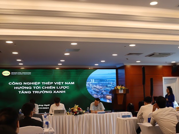 Ông Bùi Nguyên Hải - Sở công thương Quảng Ngãi đưa raý kiến về phát triển thép xanh và sự cần thiết trong việc hỗ trợ ngành Thép Việt Nam khi ngành Thép gặp thách thức lớn trong quá trình hướng đến phát triển xanh. Cơ chế điều chỉnh biên giới carbon của Liên minh Châu Âu (CBAM) sẽ có sự tác động mang tính dài hạn đến ngành Thép Việt Nam trong tương lai. Các doanh nghiệp Thép cần chủ động chuyển đổi, thay đổi ngay từ hôm nay nhằm giảm thiểu carbon đồng thời nắm kĩ các quy định về giảm thải nhằm nắm bắt cơ hội mới, nâng cao hiệu quả kinh doanh, phát triển bền vững. Ngày 25/7/2022 Thủ tướng Chính phủ ban hành Quyết định 888/QĐ-TTg 2022 đề án giải pháp triển khai kết quả về biến đổi khí hậu, Chính phủ cần thúc đẩy tín chỉ carbon trong nước, kết nối với các nước trong khu vực nhằm giúp đỡ cho doanh nghiệp trong nước phát triển.