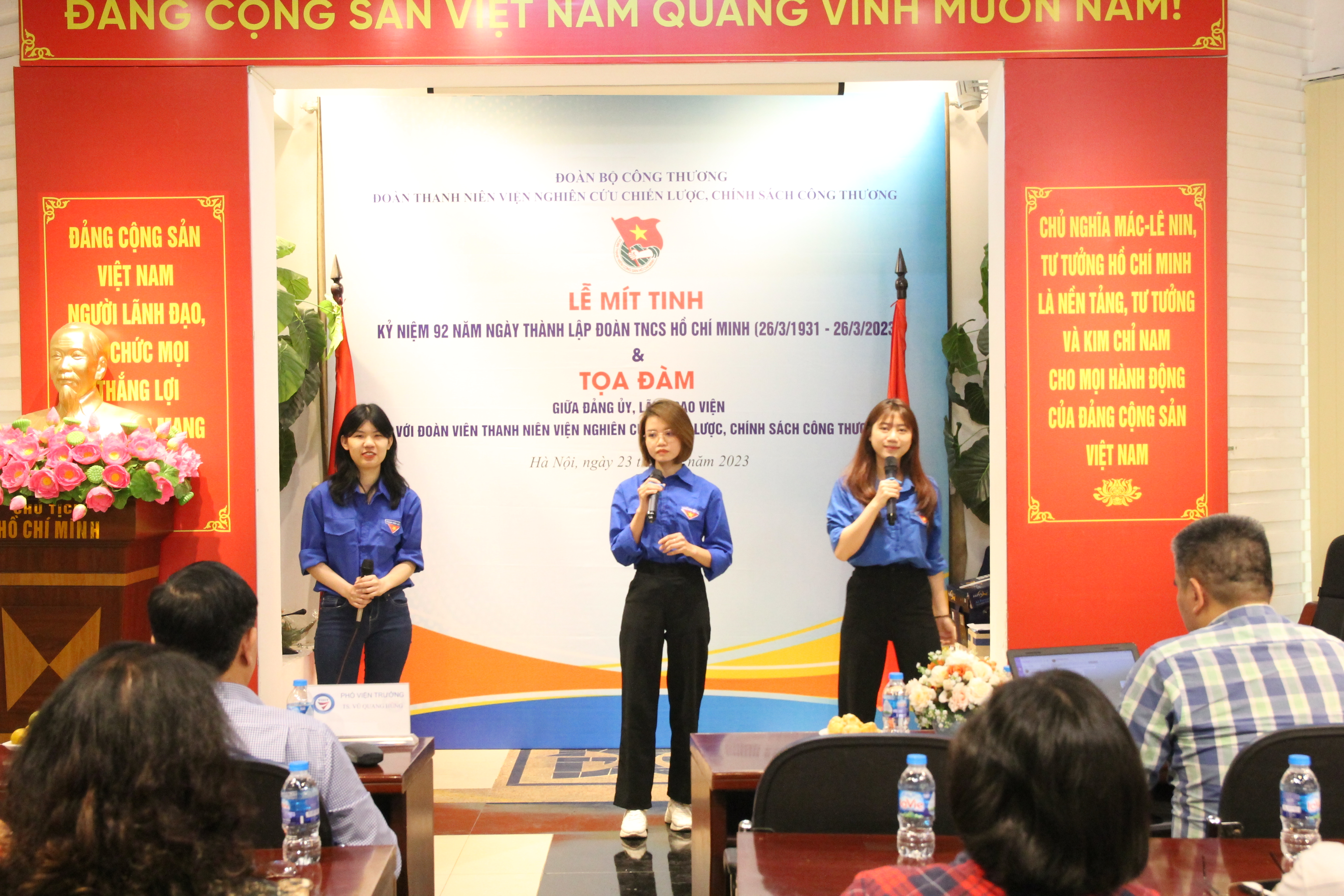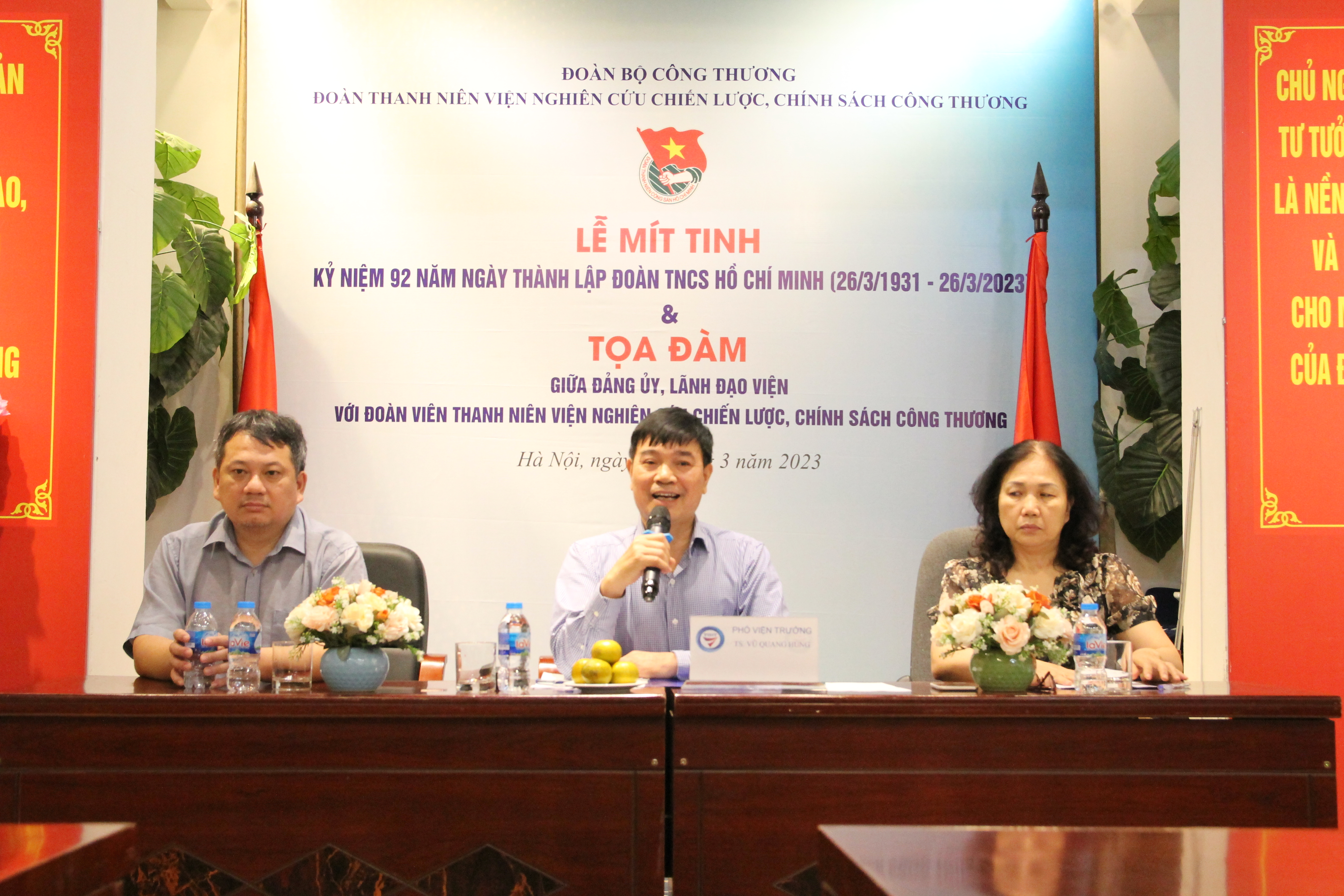 Được sự nhất trí của Đảng ủy, Lãnh đạo Viện Nghiên cứu Chiến lược, Chính sách Công Thương, ngày 23/3/2023, tại trụ sở số 17 Yết Kiêu, Hai Bà Trưng, TP. Hà Nội, Đoàn thanh niên Viện Nghiên cứu Chiến lược, Chính sách Công Thương đã long trọng tổ chức Chương trình mít tinh kỷ niệm 92 năm ngày thành lập Đoàn TNCS Hồ Chí Minh (26/3/1931 - 26/3/2023) và Tọa đàm giữa Đảng ủy, Lãnh đạo Viện với đoàn viên thanh niên Viện.