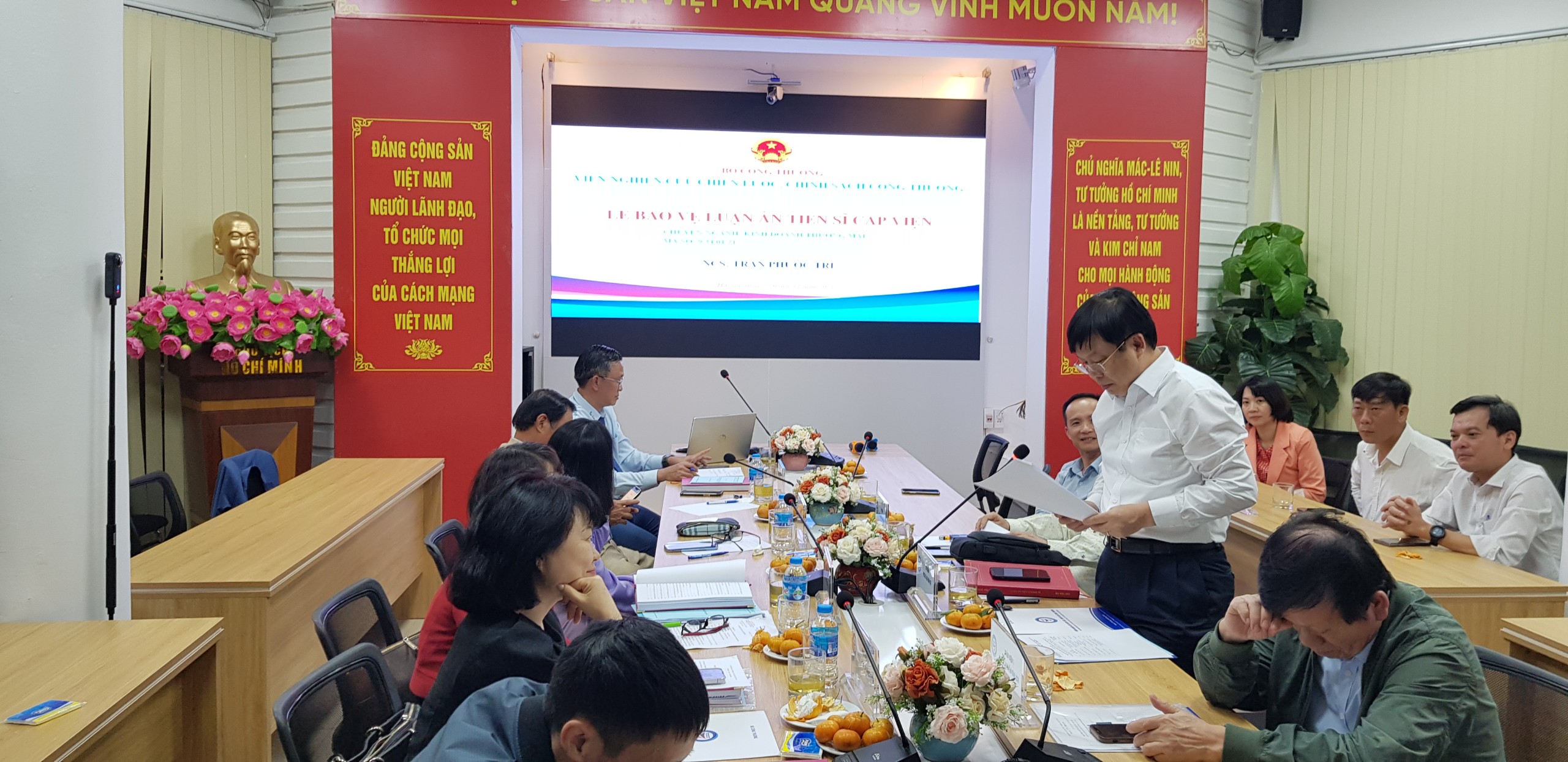 Thực hiện Quy chế Đào tạo trình độ tiến sĩ và theo Quyết định số 889/QĐ-CLCT ngày 31 tháng 10 năm 2023 của Viện trưởng Viện Nghiên cứu chiến lược, chính sách Công Thương về việc thành lập Hội đồng đánh giá Luận án tiến sĩ cấp Viện, Hội đồng đánh giá luận án Tiến sỹ cấp Viện của NCS. Trần Phước Trí được thành lập gồm các thành viên: