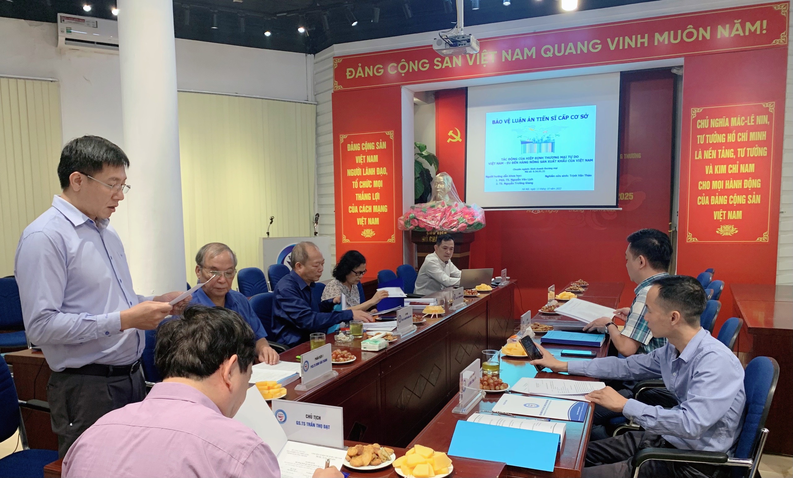 Hội đồng đánh giá Luận án cấp cơ sở đã kết luận: Luận án “Tác động của Hiệp định Thương mại tự do Việt Nam - EU đến hàng nông sản xuất khẩu Việt Nam” của NCS. Trịnh Văn Thảo có ý nghĩa về lý luận và thực tiễn; phù hợp với nội dung và mã số chuyên ngành, không trùng với các luận án khác đã được bảo vệ, đáp ứng cơ bản yêu cầu về nội dung và hình thức của một Luận án Tiến sỹ chuyên ngành Thương mại.