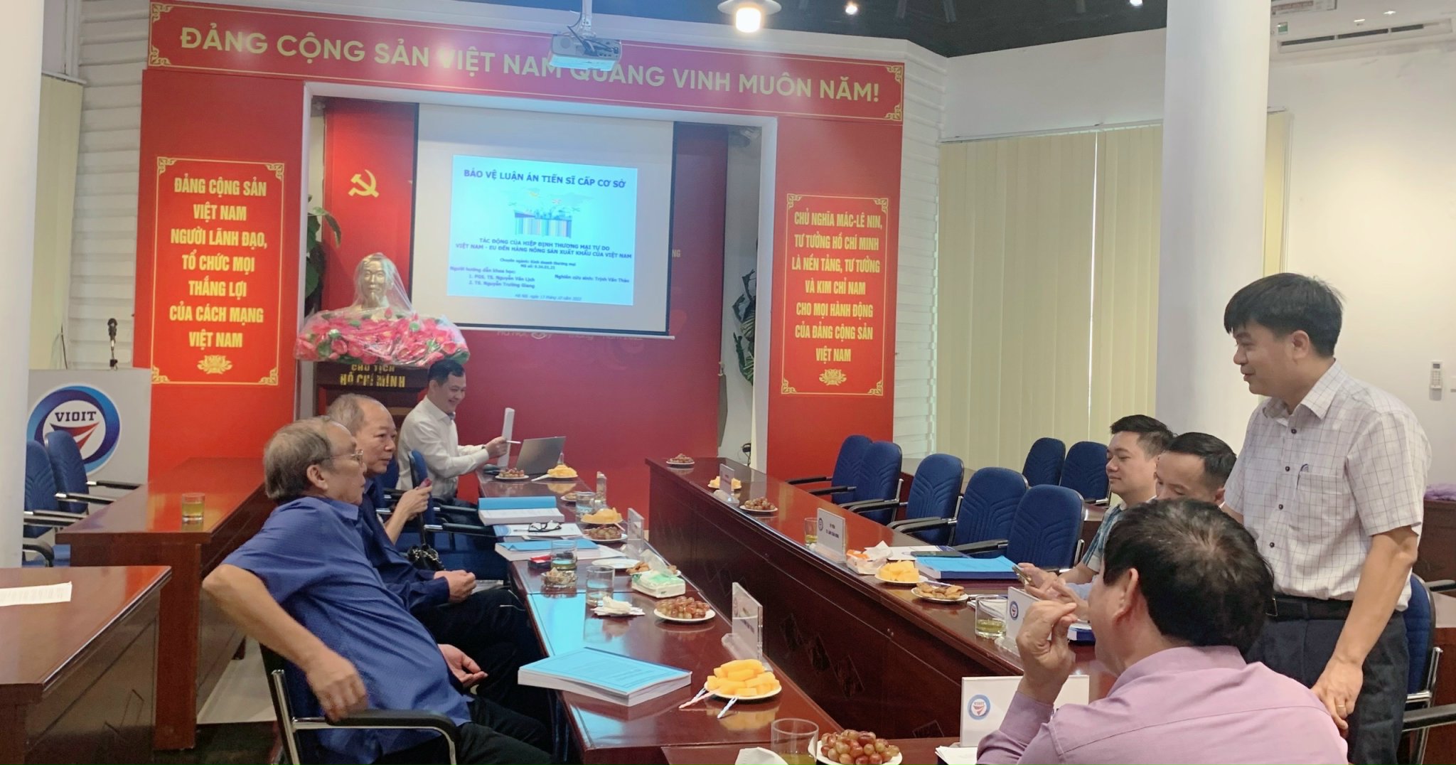 Sáng ngày 13 tháng 10 năm 2022, tại trụ sở 17 Yết Kiêu, Hai Bà Trưng, Hà Nội, Viện Nghiên cứu Chiến lược, Chính sách Công Thương đã tổ chức buổi đánh giá luận án Tiến sỹ cấp cơ sở theo quyết định thành lập Hội đồng đánh giá số 709/QĐ-CLCT ngày 05 tháng 09 năm 2022 của Viện trưởng Viện Nghiên cứu Chiến lược, Chính sách Công Thương cho NCS. Trịnh Văn Thảo với đề tài “Tác động của Hiệp định Thương mại tự do Việt Nam - EU đến hàng nông sản xuất khẩu Việt Nam”, chuyên ngành Kinh doanh thương mại, mã số 9.34.01.21. Luận án của NCS được hướng dẫn bởi: PGS.TS Nguyễn Văn Lịch - Giáo viên hướng dẫn 1 và TS Nguyễn Trường Giang - Giáo viên hướng dẫn 2.