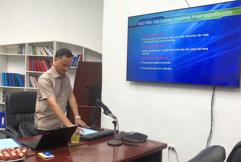 Nghiên cứu sinh Nguyễn Hùng Sơn đã trình bày tóm tắt nội dung của 03 chuyên đề tiến sỹ, cụ thể như sau: Chuyên đề 1: “Một số vấn đề lý luận về phát triển xuất khẩu bền vững mặt hàng giầy dép; Chuyên đề 2: “Thực trạng xuất khẩu mặt hàng giầy dép của Việt Nam sang liên minh Châu Âu (EU)Chuyên đề 3: “Giải pháp xuất khẩu bền vững mặt hàng giầy dép của Việt Nam trong bối cảnh thực thi EVFTA.