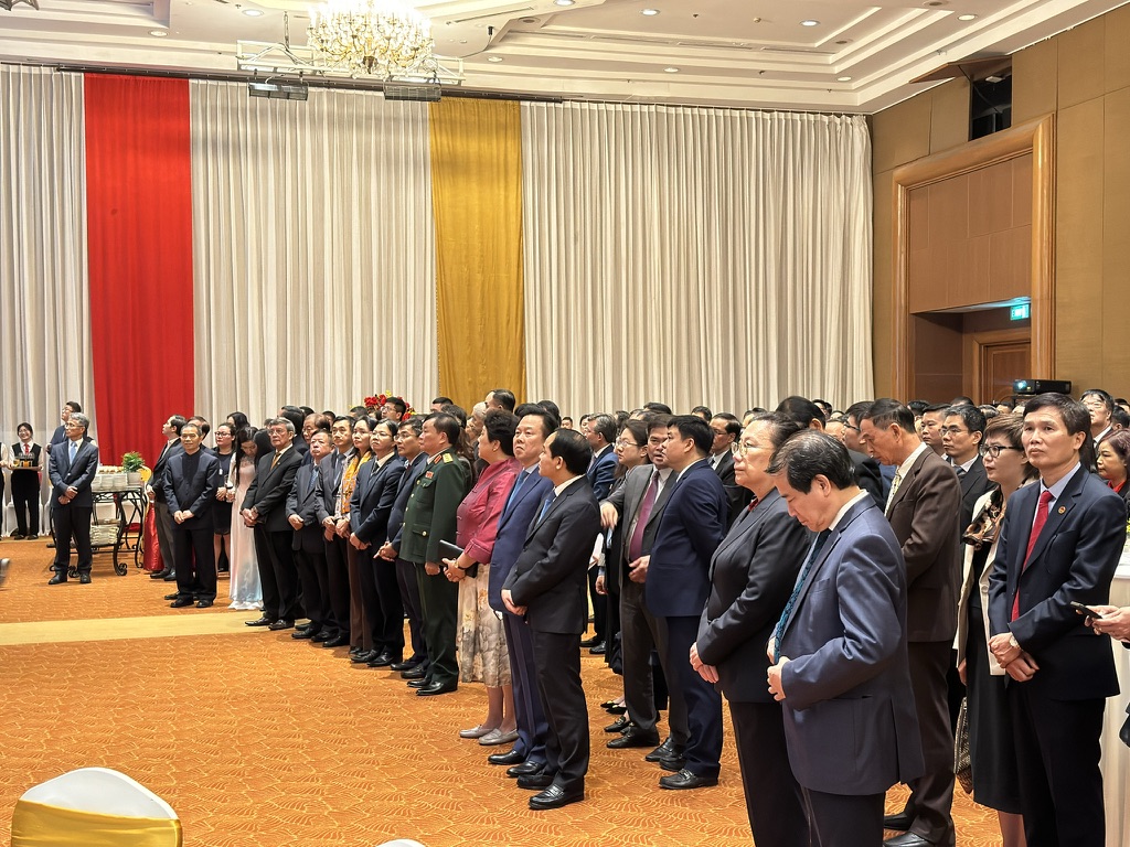Phát biểu tại buổi chiêu đãi, Đại sứ Trung Quốc tại Việt Nam Hùng Ba nhấn mạnh, trải qua 74 năm kể từ khi thiết lập quan hệ ngoại giao, quan hệ Trung Quốc - Việt Nam đã đạt được tiến triển tích cực và toàn diện. Trong quá trình tìm tòi con đường đi lên chủ nghĩa xã hội phù hợp với tình hình của mỗi nước và con đường hiện đại hóa mang đặc sắc của mỗi nước, hai bên học hỏi lẫn nhau, chung tay tiến lên, cùng nhau tạo nên kỳ tích về phát triển kinh tế nhanh chóng và ốn định xã hội lâu dài, cùng thể hiện tính ưu việt và tương lai tươi sáng của chế độ xã hội chủ nghĩa, cùng tạo ra hình thái mới của văn minh nhân loại Dưới sự dẫn dắt chiến lược của Tổng Bí thư Nguyễn Phú Trọng và Tổng Bí thư Tập Cận Bình, quan hệ hai nước không ngừng bước lên tầm cao mới. Đại sứ Hùng Ba khẳng định, Trung Quốc sẵn sàng cùng Việt Nam tiếp tục làm sâu sắc và nâng tầm quan hệ đối tác hợp tác chiến lược toàn diện giữa hai nước, đẩy mạnh hợp tác cùng có lợi trên các lĩnh vực.