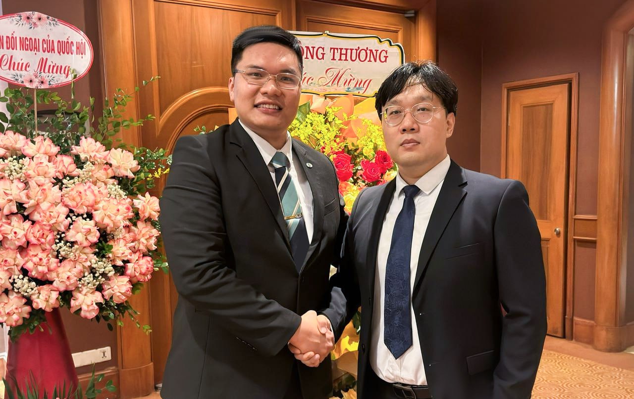 Ông Trịnh Quốc Vinh, thành viên Ban xúc tiến Hợp tác quốc tế, chuyên viên Trung tâm tham vấn WTO và FTAs trao đổi một số nội dung về tình hình hợp tác và thực thi các cam kết trong khuôn khổ đa phương như ACFTA, RCEP, WTO của hai nước cùng cán bộ, bí thư thứ hai phụ trách hợp tác đa biên bà Wang Zhe và các cán bộ là bí thư tại phòng Kinh tế và Thương mại, Đại sứ quán Trung Quốc tại Việt Nam.