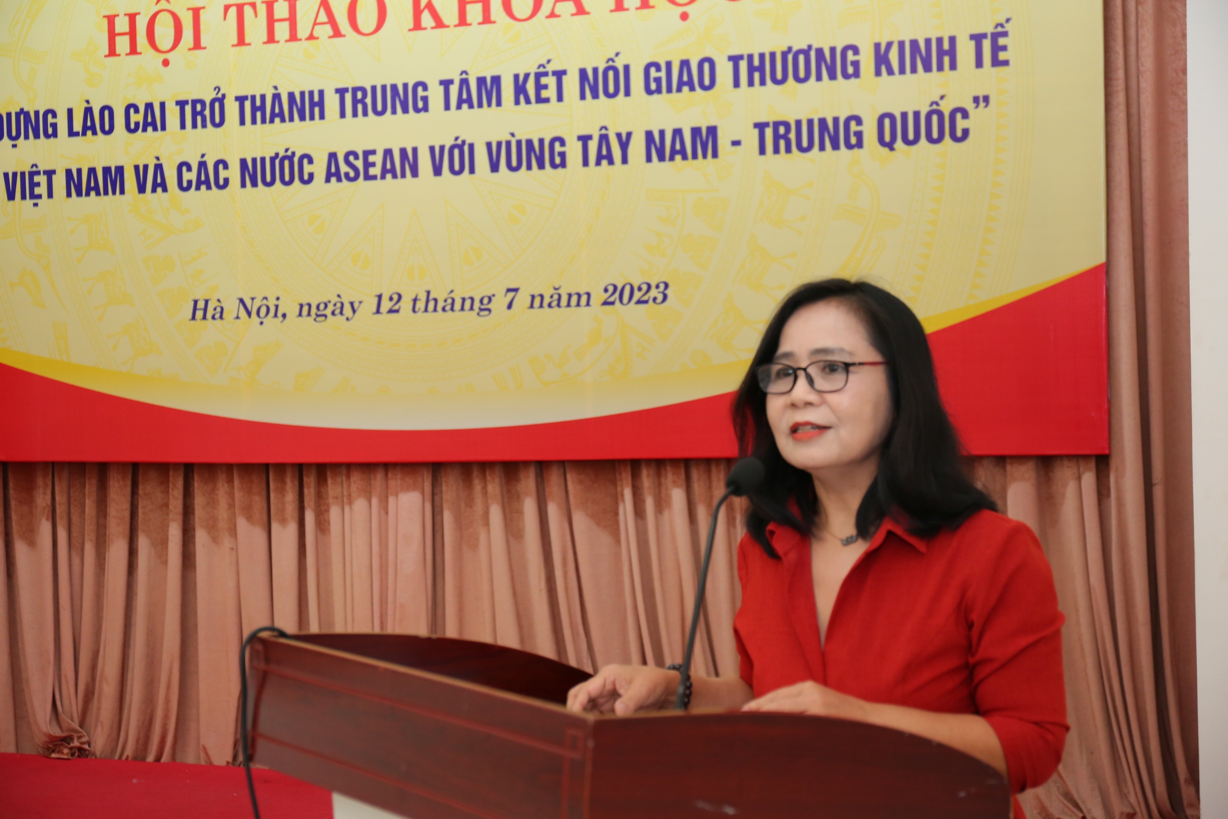 Phát biểu khai mạc Hội thảo, Thứ trưởng Bộ Công Thương Nguyễn Sinh Nhật Tân nêu rõ, Nghị quyết số 11-NQ/TW ngày 10/2/2022 của Bộ Chính trị về phương hướng phát triển kinh tế - xã hội, đảm bảo quốc phòng, an ninh vùng trung du và miền núi Bắc Bộ đến năm 2030, tầm nhìn đến năm 2045, xác định “Xây dựng Lào Cai trở thành một trong những cực tăng trưởng, hạt nhân quan trọng trong phát triển kinh tế vùng. Đồng thời, đưa Lào Cai trở thành trung tâm kết nối giao thương kinh tế giữa Việt Nam và các nước ASEAN với vùng Tây Nam Trung Quốc”.
