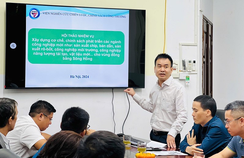 Sáng ngày 20/11/2024, tại Hội trường tầng 2, trụ sở của Viện số 17 Yết Kiêu, Phường Nguyễn Du, Quận Hai Bà Trưng, Hà Nội đã diễn ra Hội thảo “Quan điểm, mục tiêu định hướng và giải pháp phát triển ngành công nghiệp mới vùng đồng bằng Sông Hồng”. Hội thảo thuộc nhiệm vụ “Xây dựng cơ chế, chính sách phát triển các ngành công nghiệp mới như: sản xuất chíp, bán dẫn, sản xuất rô-bốt, công nghiệp môi trường, công nghiệp năng lượng tái tạo, vật liệu mới... cho vùng đồng bằng sông Hồng” do ThS. Đỗ Văn Long - Trưởng phòng Nghiên cứu kinh tế số và đổi mới sáng tạo làm chủ nhiệm.