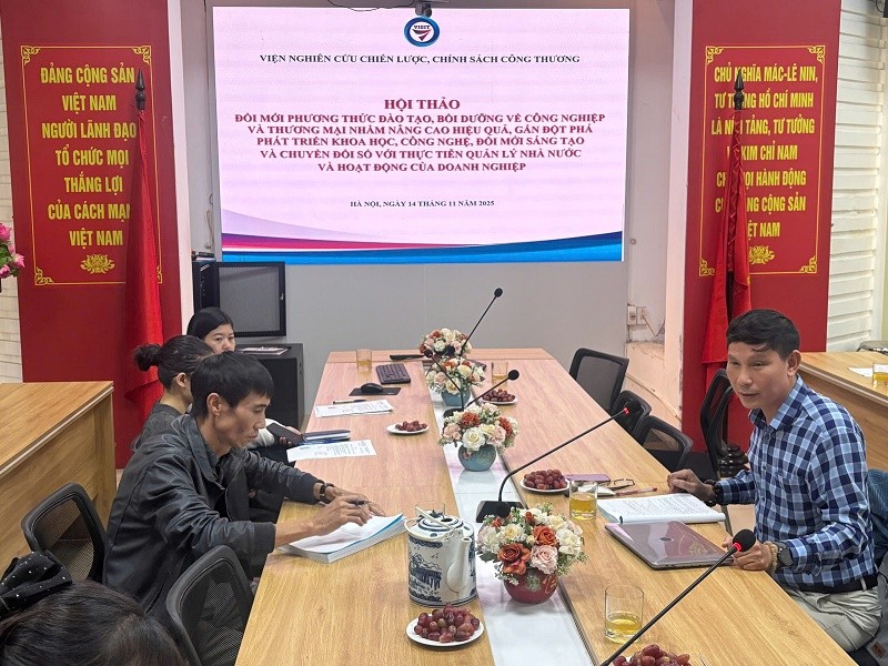 Sáng ngày 14 tháng 11 năm 2025, tại Hội trường tầng 1 trụ sở 17 Yết Kiêu - Hà Nội, Viện Nghiên cứu Chiến lược, Chính sách Công Thương đã tổ chức thành công Hội thảo góp ý nhiệm vụ: “Đổi mới phương thức đào tạo, bồi dưỡng về công nghiệp và thương mại nhằm nâng cao hiệu quả, gắn đột phá phát triển khoa học, công nghệ, đổi mới sáng tạo và chuyển đổi số với thực tiễn quản lý nhà nước và hoạt động của doanh nghiệp” do ThS. Đinh Tiến Dũng - Trung tâm Đào tạo Bồi dưỡng Công Thương làm chủ nhiệm.