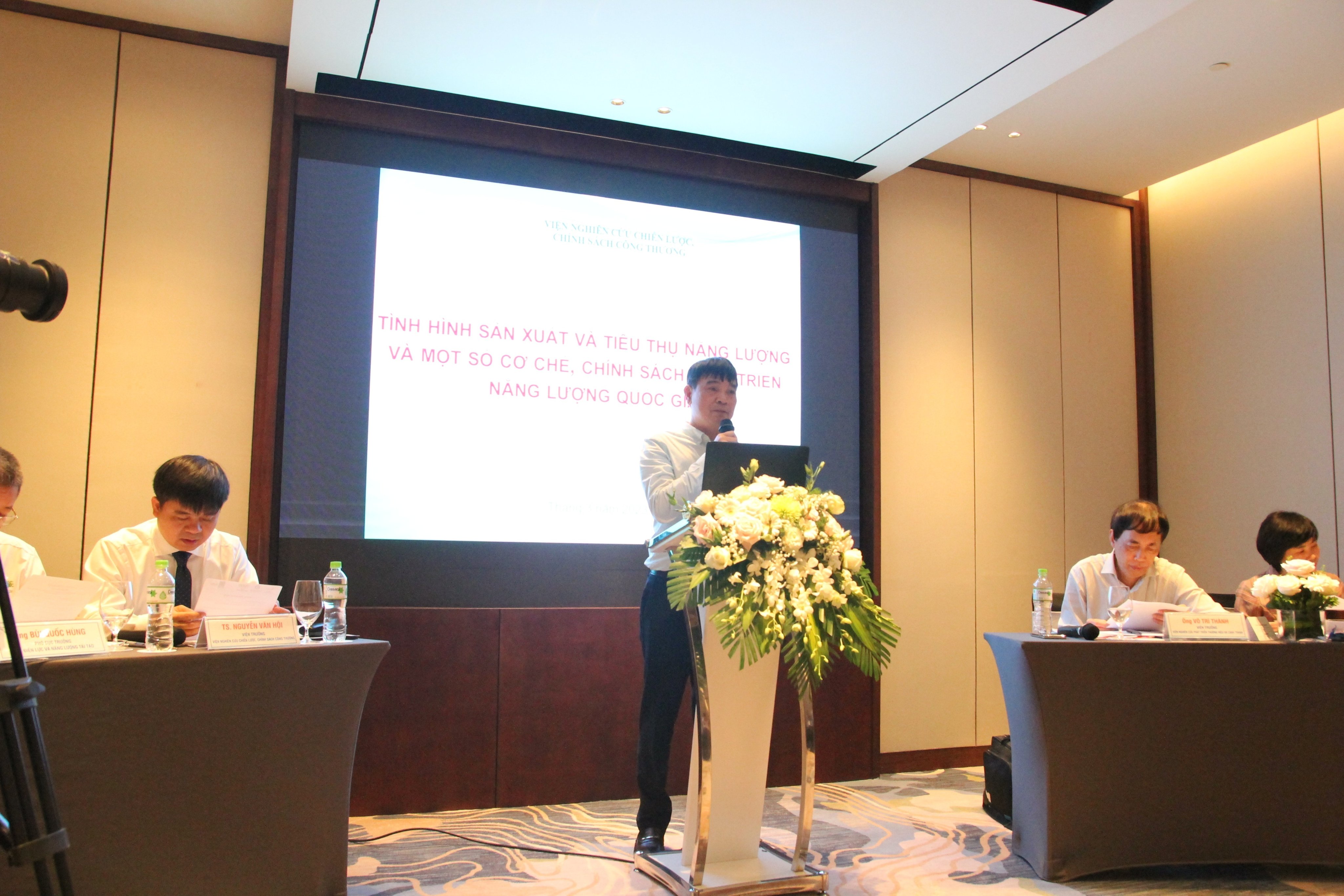 Tham dự hội thảo, TS. Vũ Quang Hùng - Phó Viện trưởng, Viện nghiên cứu Chiến lược, Chính sách Công Thương có bài tham luận với chủ đề: “ Tình hình sản xuất và tiêu thụ năng lượng giai đoạn đến năm 2030 và một số cơ chế, chính sách trong phát triển năng lượng”. Dẫn chứng số liệu từ Dự thảo chiến lược phát triển năng lượng quốc gia, TS.Vũ Quang Hùng đã nêu bật được hiện trạng cung cầu năng lượng trong nước giai đoạn 2010-2020, đồng thời giới thiệu một số cơ chế, chính sách liên quan đến phát triển năng lượng, đó là Nghị Quyết số 55- NQ/TW ngày 11 tháng 2 năm 2020 của Bộ Chính trị về định hướng chiến lược phát triển năng lượng quốc gia của Việt Nam đến năm 2030, tầm nhìn đến năm 2045 và Nghị quyết số 140/NQ-CP ngày 02 tháng 10 năm 2020 của Chính phủ ban hành chương trình hành động của Chính phủ thực hiện Nghị quyết số 55- NQ/TW.