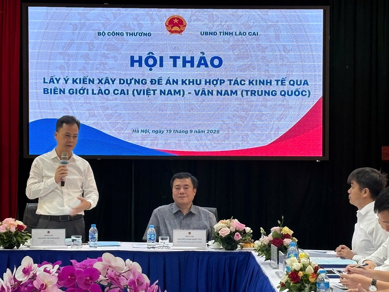 Chiều ngày 19 tháng 09 năm 2025, Bộ Công Thương đã tổ chức Hội thảo lấy ý kiến xây dựng Đề án Khu hợp tác kinh tế qua Biên giới Lào Cai (Việt Nam) - Vân Nam (Trung Quốc) tại trụ sở Viện Nghiên cứu Chiến lược, Chính sách Công Thương - 193 Vĩnh Hưng, Hà Nội.
