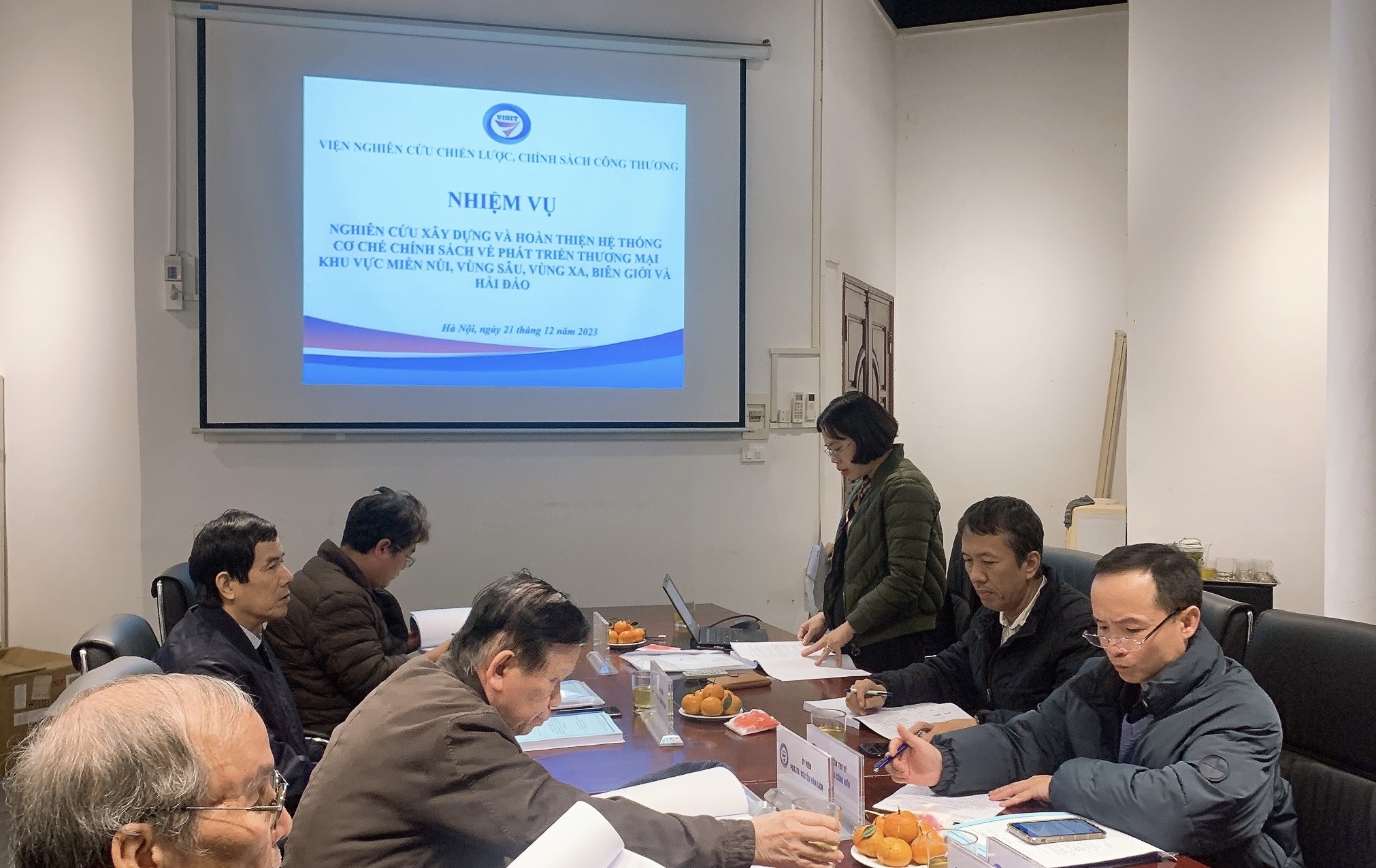 Chiều ngày 21 tháng 12 năm 2023, tại Hội trường tầng 2, Viện Nghiên cứu chiến lược, chính sách Công Thương, số 17 Yết Kiêu, Nguyễn Du, Hai Bà Trưng, Hà Nội đã diễn ra buổi nghiệm thu nhiệm vụ “Nghiên cứu xây dựng và hoàn thiện hệ thống cơ chế chính sách về phát triển thương mại khu vực miền núi, vùng sâu, vùng xa, biên giới và hải đảo” do CN. Phạm Hồng Lam - Phòng Nghiên cứu và dự báo thị trường làm chủ nhiệm.