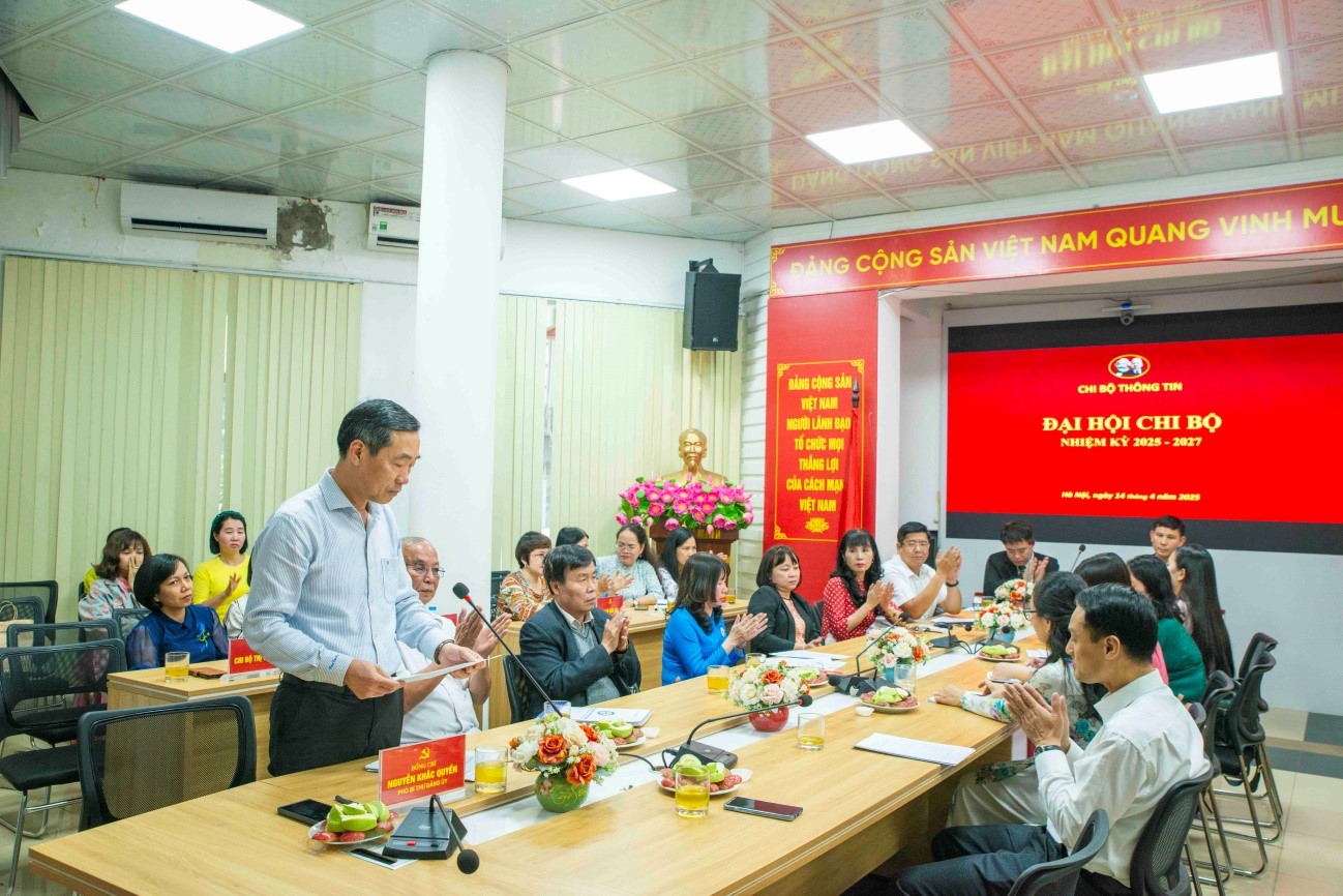 Tại Đại hội, Đồng chí Đỗ Quang - Bí thư Chi bộ nhiệm kỳ 2022 - 2025 đã trình bày Báo cáo chính trị, đánh giá kết quả công tác của Chi bộ Thông tin trong nhiệm kỳ 2022-2025 và đề ra phương hướng, nhiệm vụ, giải pháp cho nhiệm kỳ mới 2025 - 2027. Báo cáo chính trị cho thấy Chi bộ Thông tin đã phát huy trí tuệ tập thể, đoàn kết, kiên trì, khắc phục khó khăn hoàn thành xuất sắc 100% nhiệm vụ và chỉ tiêu mà Nghị quyết Đại hội nhiệm kỳ 2022 - 2025 đã đề ra. Để thực hiện thắng lợi Nghị quyết Đại hội Chi bộ Thông tin nhiệm kỳ 2025-2027, báo cáo chính trị đã đề ra phương hướng: Phấn đấu nâng cao chất lượng sinh hoạt chi bộ gắn với thực hiện tốt kế hoạch công tác chuyên môn; Triển khai áp dụng các giải pháp nhằm nâng cao năng lực lãnh đạo, sức chiến đấu của Chi bộ và chất lượng đội ngũ cán bộ, đảng viên trong Chi bộ; Tiếp tục nỗ lực, phấn đấu, vươn lên trở thành Chi bộ trong sạch vững mạnh; Đẩy mạnh công tác phát triển Đảng viên, giới thiệu quần chúng tích cực đi học lớp tìm hiểu về Đảng Cộng sản Việt Nam, giúp đỡ dìu dắt các quần chúng tích cực được đứng trong hành ngũ của Đảng.