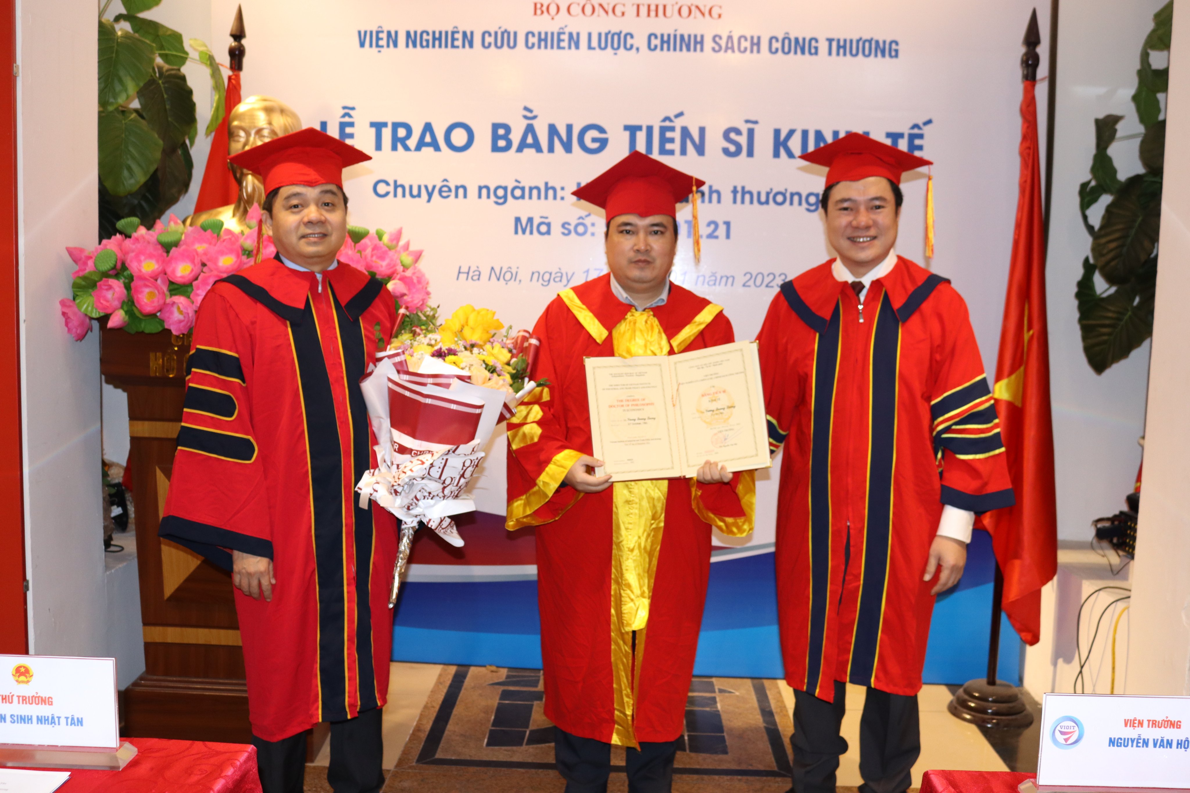 Sáng ngày 17/1/2023, Viện Nghiên cứu Chiến lược, Chính sách Công Thương đã long trọng tổ chức buổi lễ công bố quyêt định và trao bằng tiến sĩ cho 07 nghiên cứu sinh đã hoàn thành nhiệm vụ học tập, nghiên cứu và bảo vệ thành công luận án tiến sĩ tại Viện.