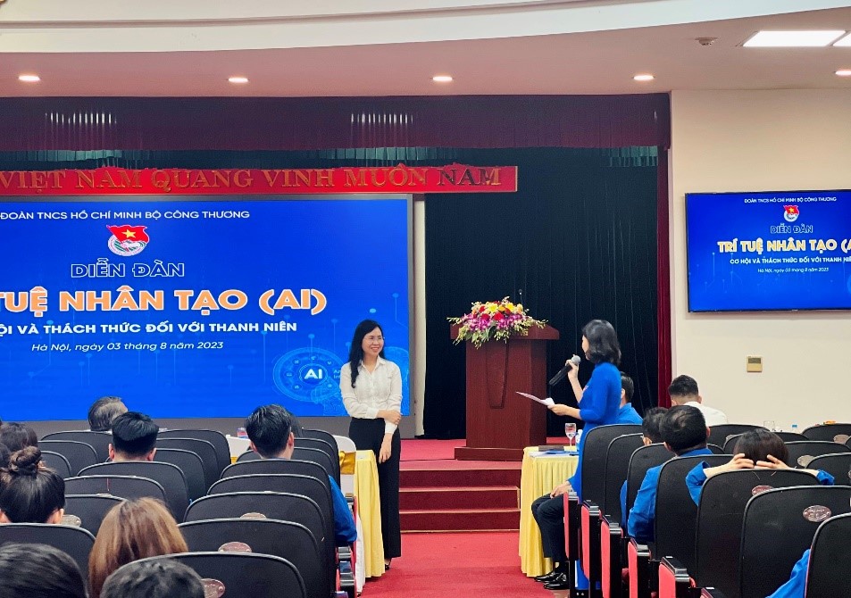Chiều ngày 03/8/2023, tại Hội trường tầng 7, nhà B, 54 Hai Bà Trưng, Thành phố Hà Nội, Đoàn Thanh niên Bộ Công Thương phối hợp với Cục Thương mại điện tử và Kinh tế số tổ chức “Diễn đàn Trí tuệ nhân tạo (AI) - Cơ hội và thách thức đối với thanh niên”.